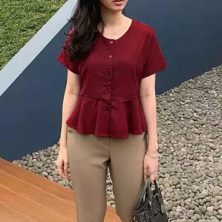 0110 FEBY Top Peplum Moscrepe Premium Good Quality / Atasan Blouse Wanita Size L Full Kancing