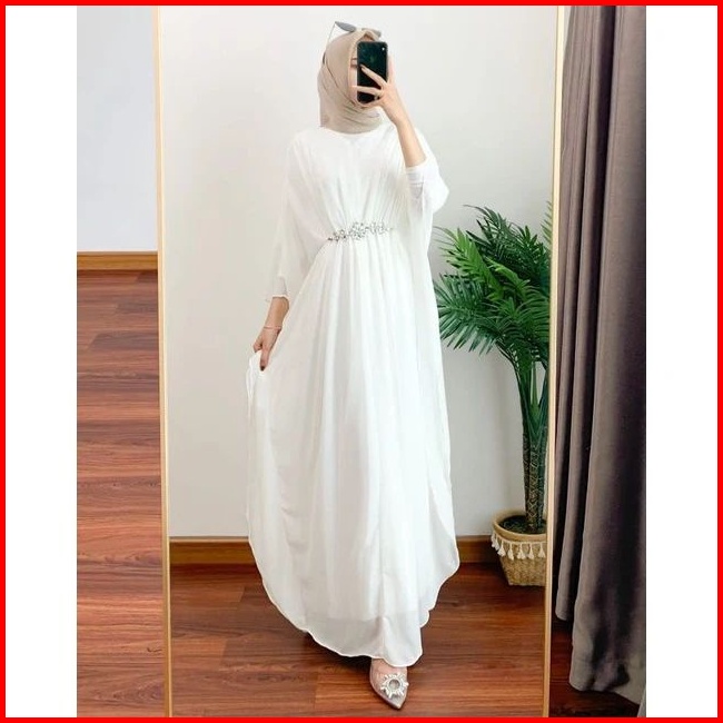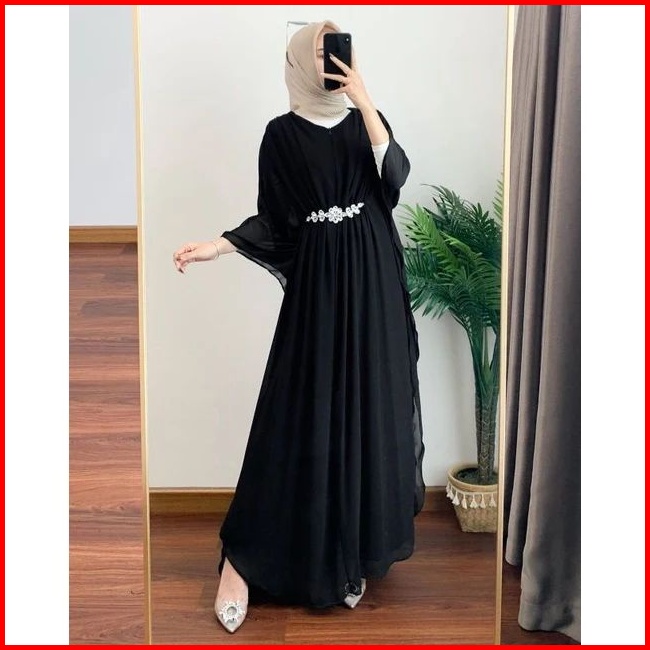 Gamis Kaftan Ceruty Baby Doll Model Batwing Zipper Depan Busui Friendly Ada Tali Di Belakang Full Furring Di Bagian Depa