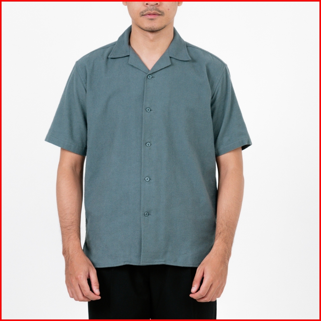 Screamous Kemeja Shortsleeve Shirt Open Collar Sade Light Grey