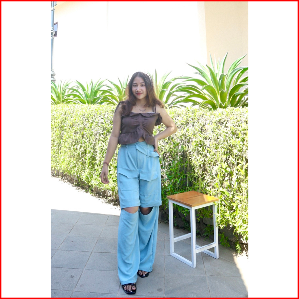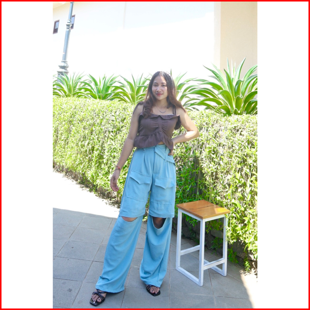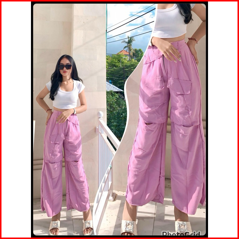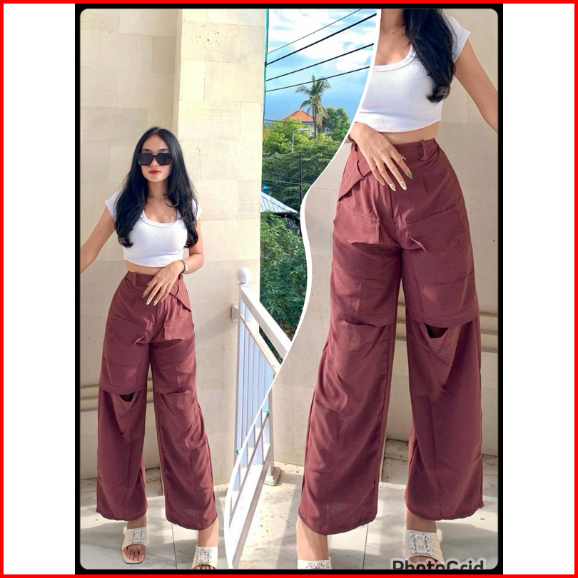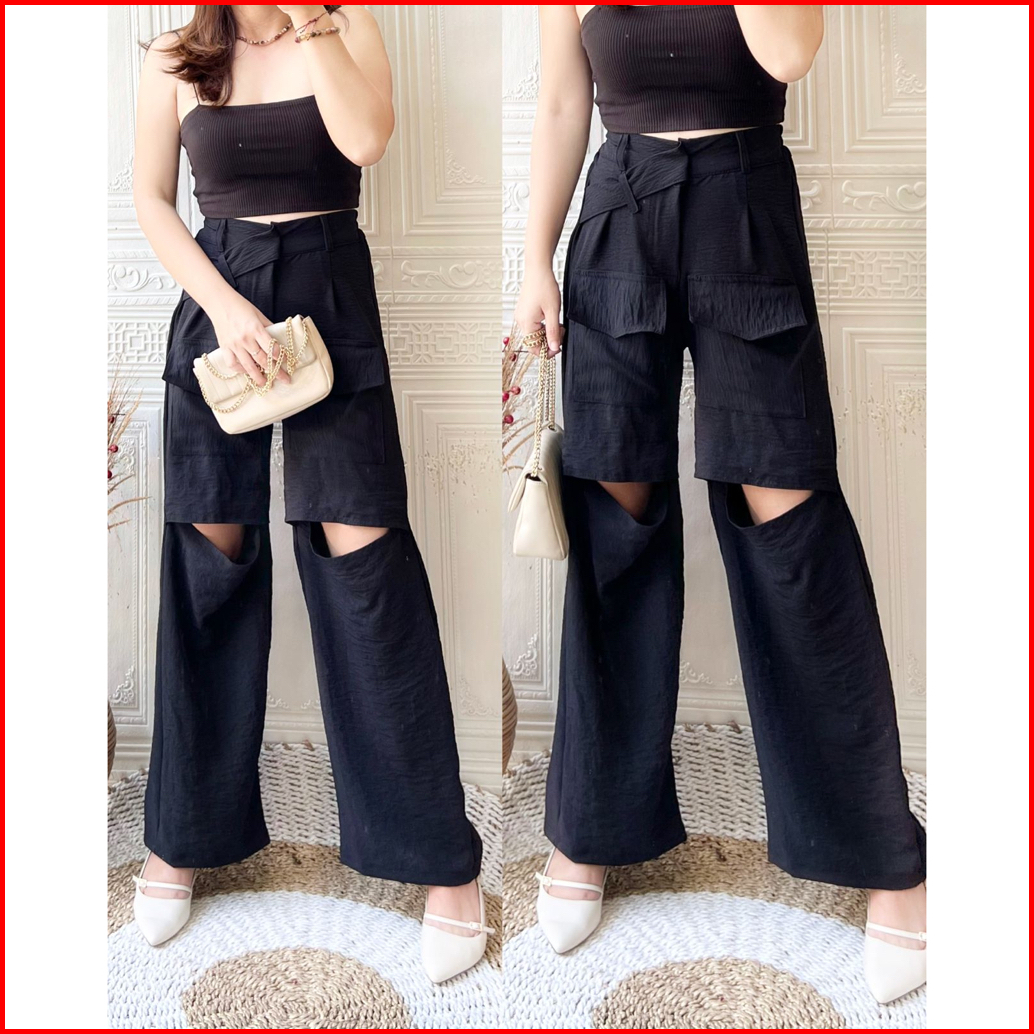 Kulot Lobang Airflow Hiraya Pants - Cut Off Pants - Loosepants Wanita - Trendy Pocket Pants Kulot Hw Panjang Airflow Pre