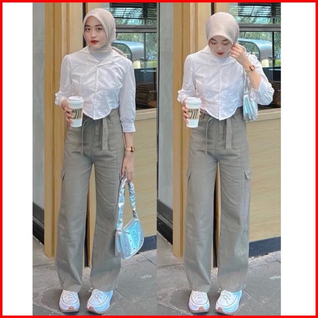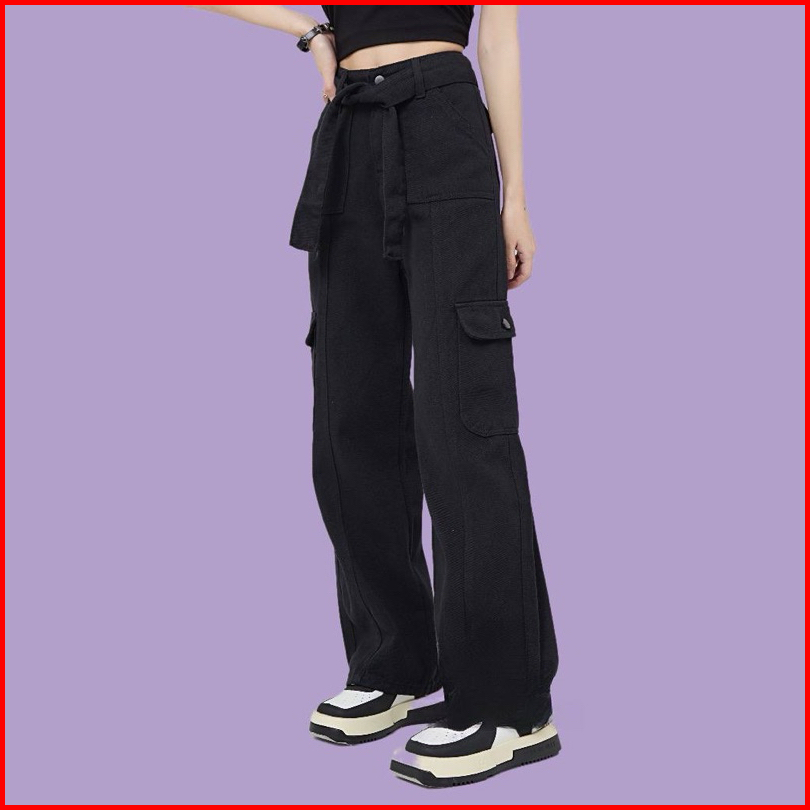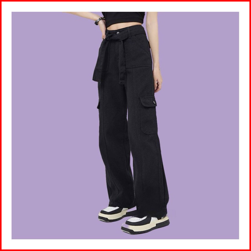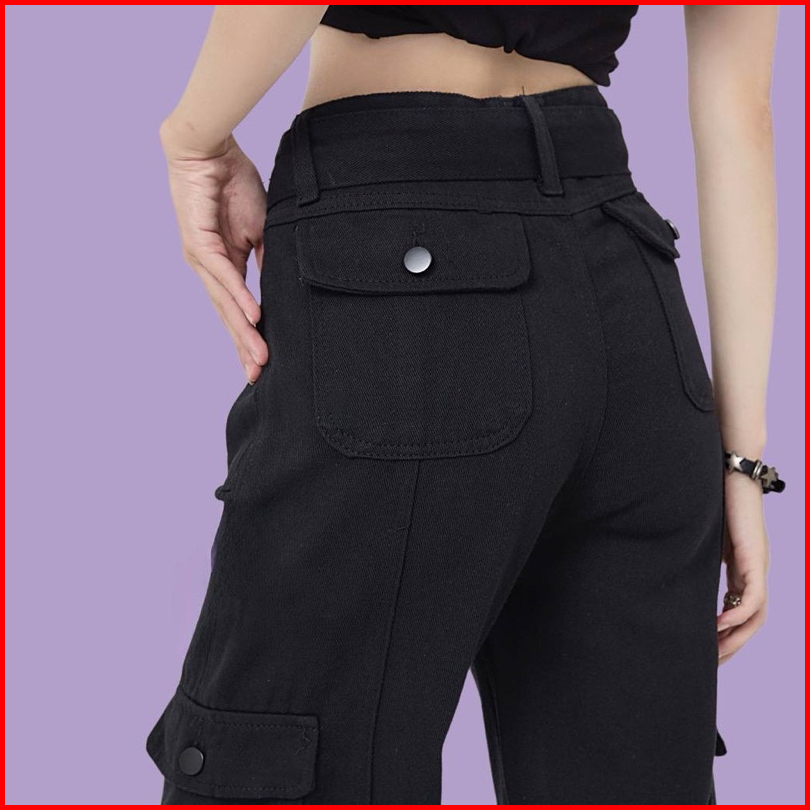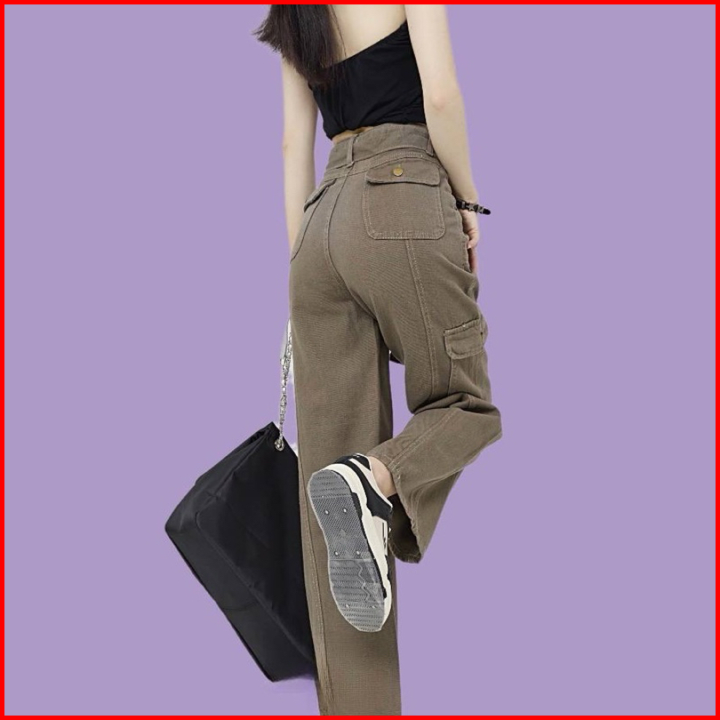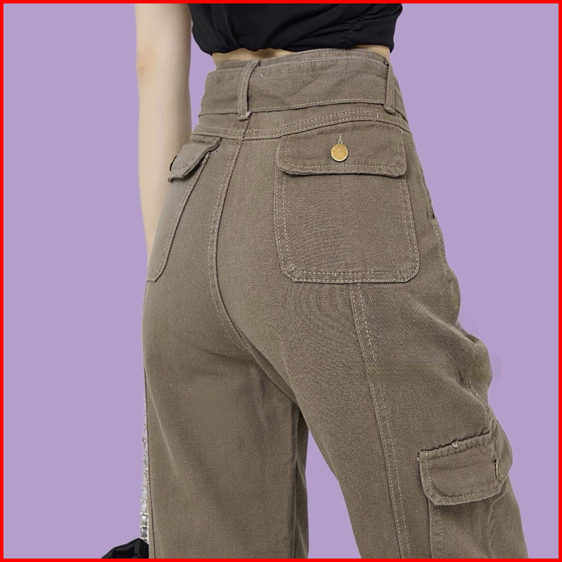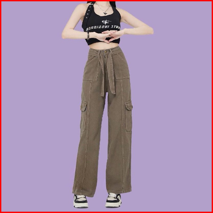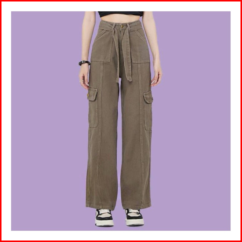 J41 Cargo Jeans Wanita Hw Celana Panjang Boyfriend Jeans Kulot Celana Kargo Wanita High Waist Jeans Lurus Celana Panjang