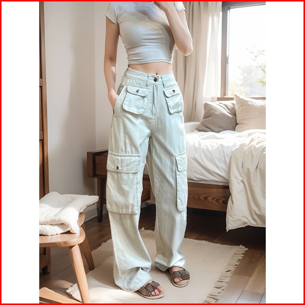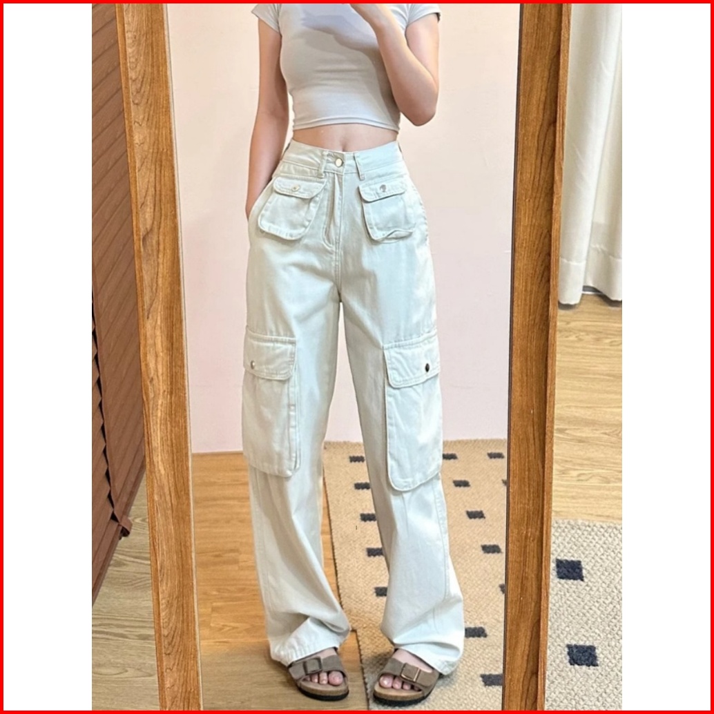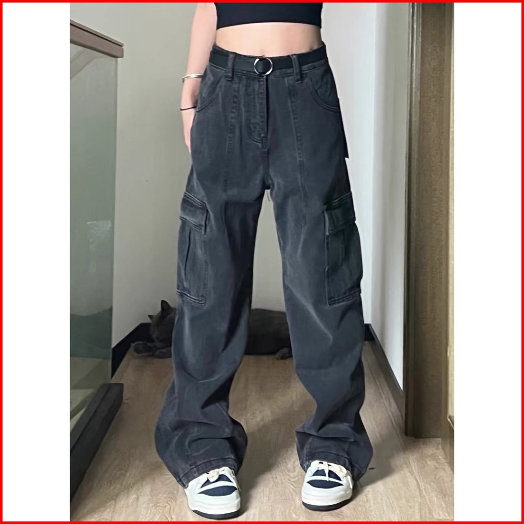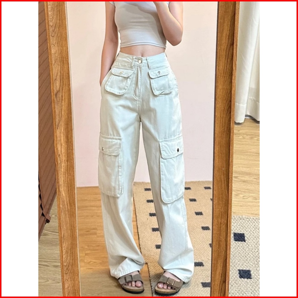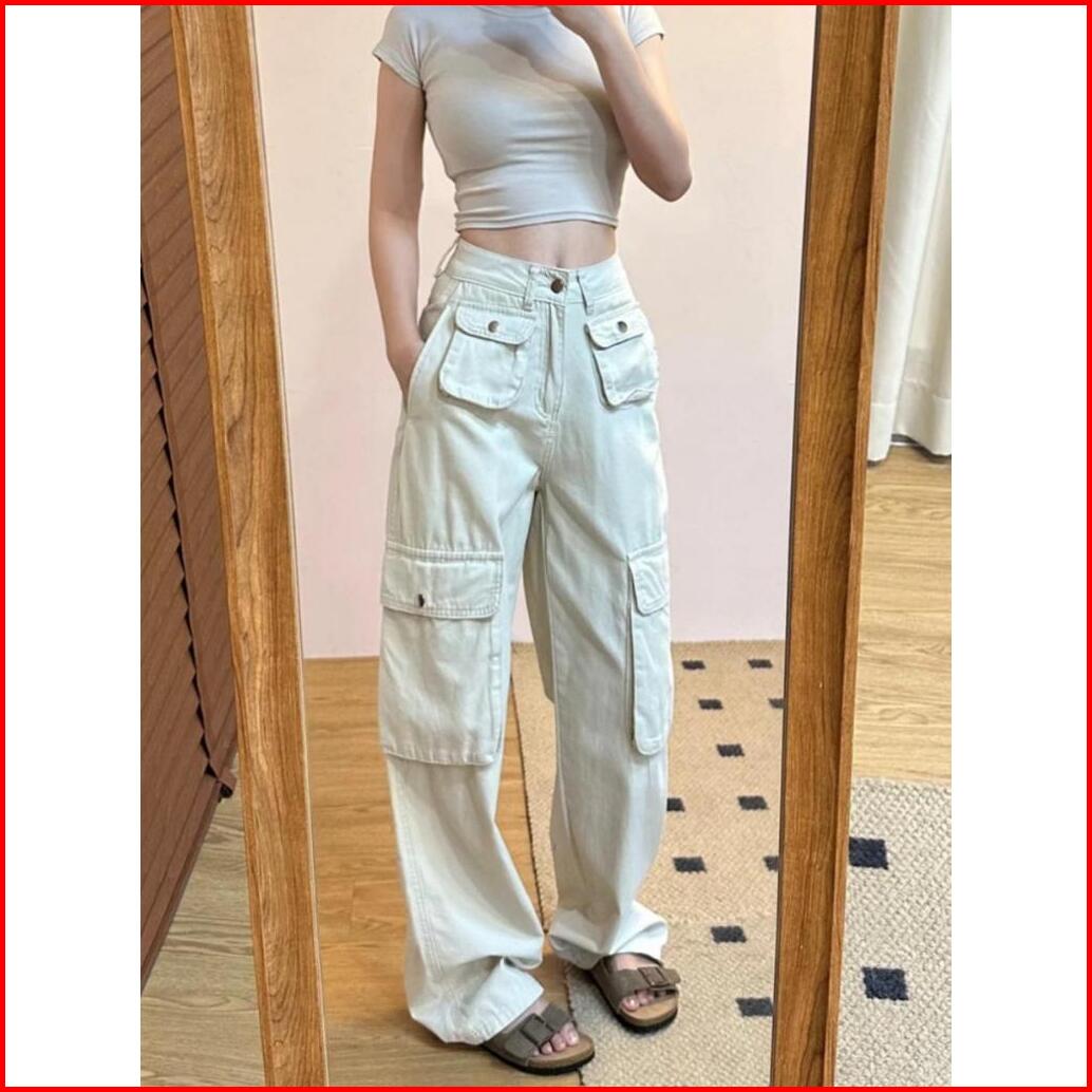Xiaozhainv Celana Jeans Wanita Korean Style High Waist Jeans Celana Jeans Kulot Celana Cargo Wanita Celana Kargo Wanita