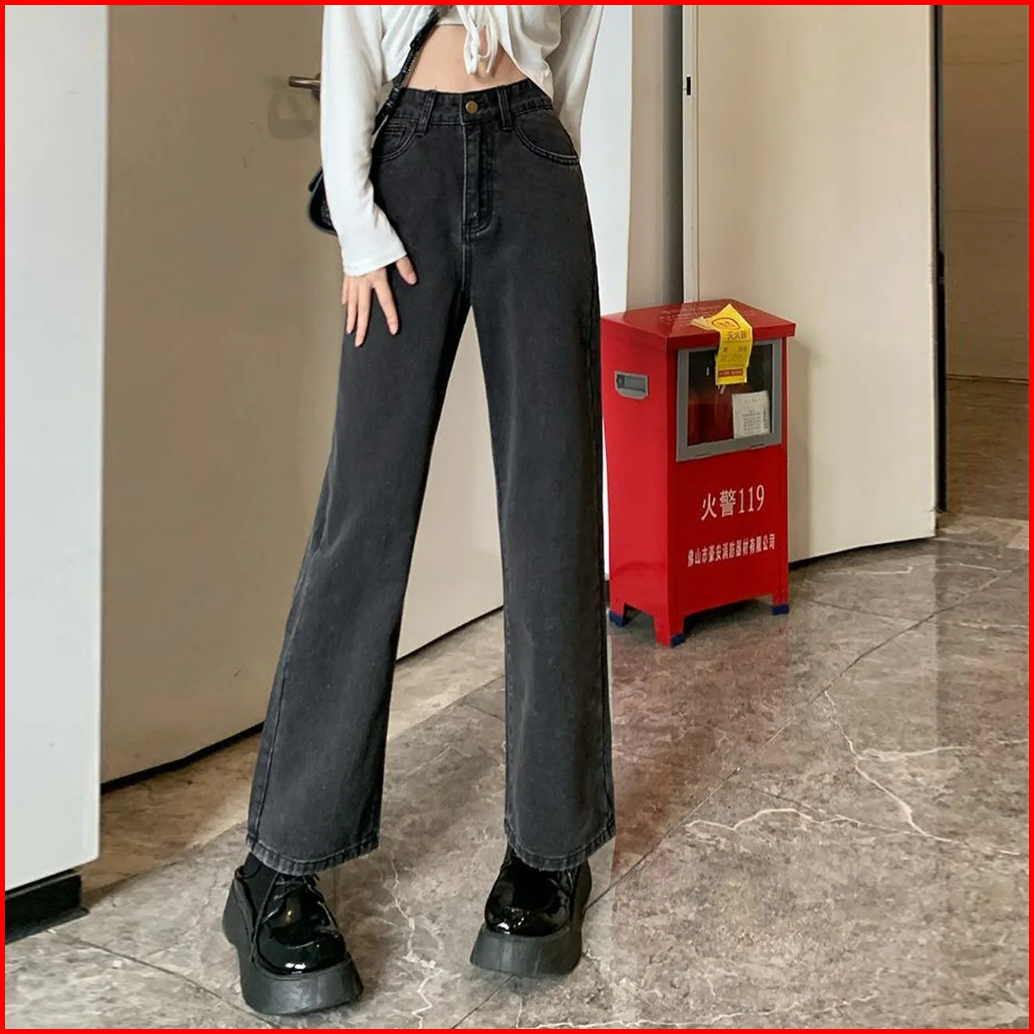 Celana Jeans Wanita High Waist Celana Panjang Street Style Fashion Celana Wanita Korea Loose Jins