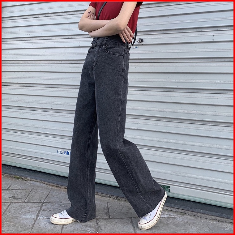 Oorajeans Pinggang Tinggi Longgar Kasual Berkaki Lurus Wanita Celana