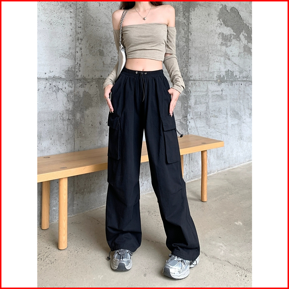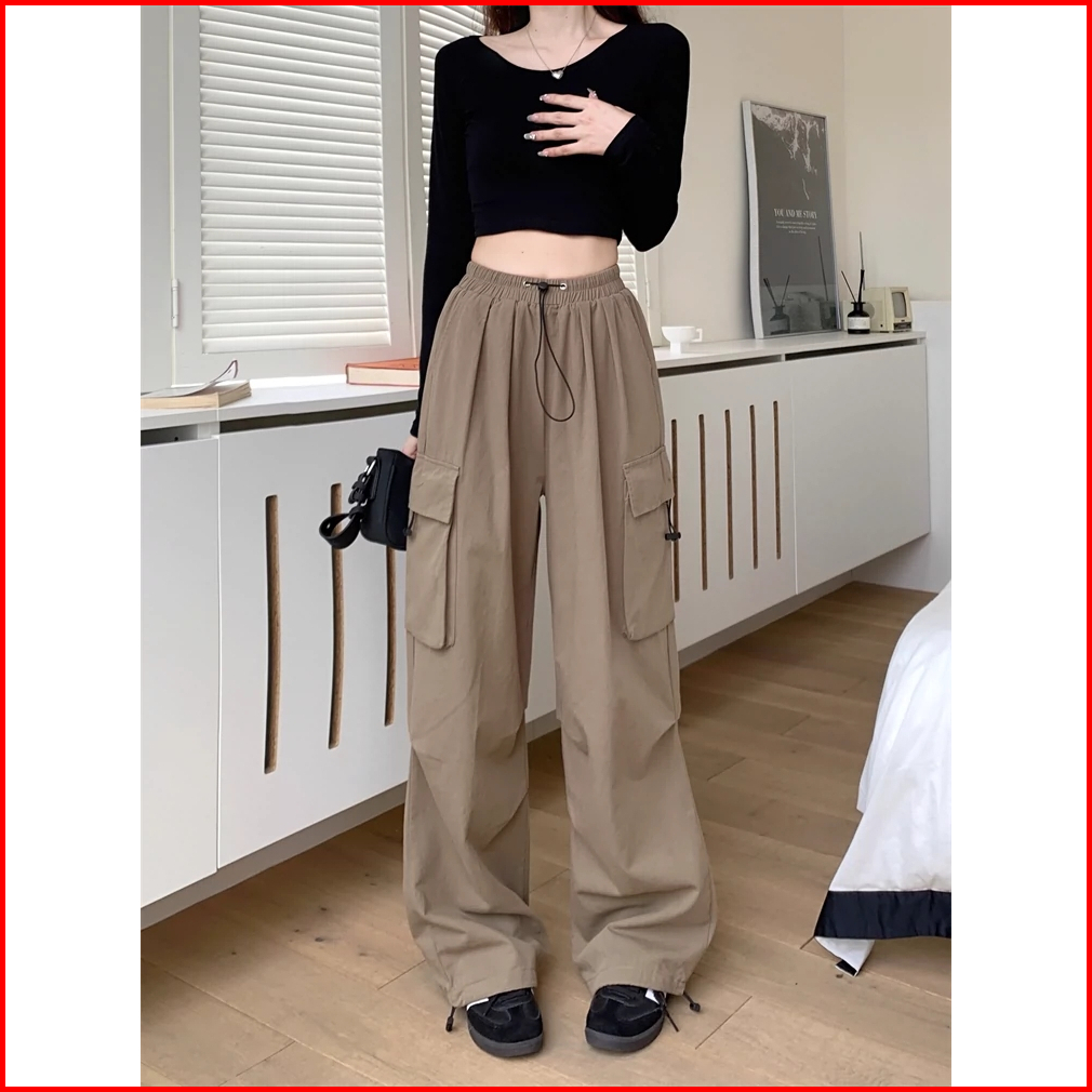 Celana Cargo Wanita High Waist Celana Wanita Kekinian Korean Style Panjang Fashion