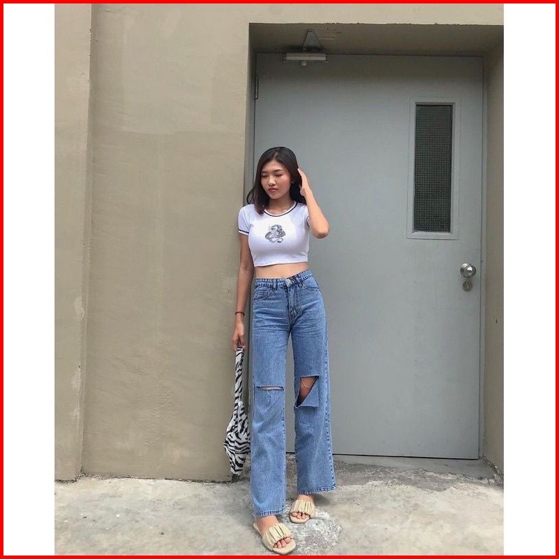 Celana Bawahan Haighwaist Kulot Jeans Wanita Celana Kulot Haighwaist Jeans Sobek