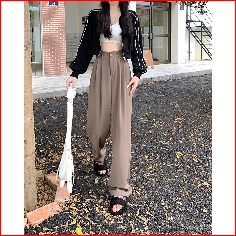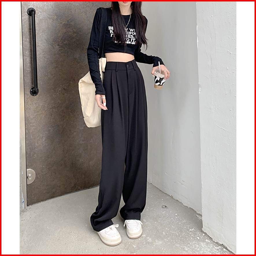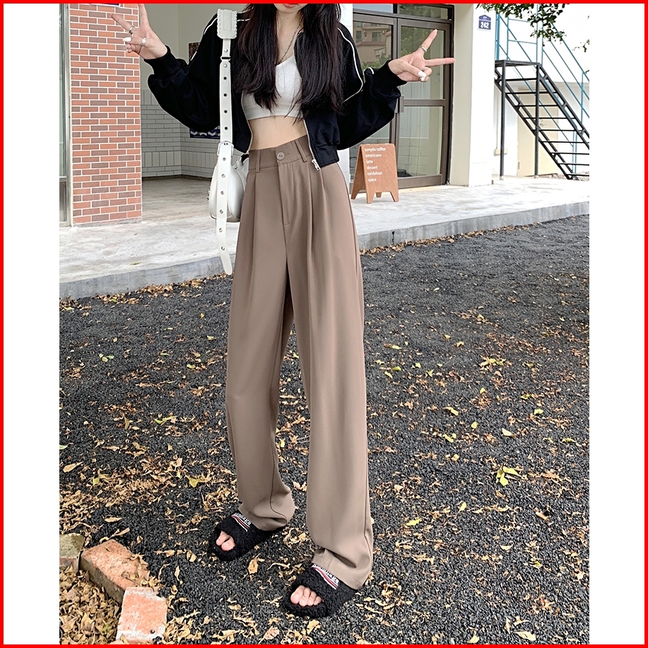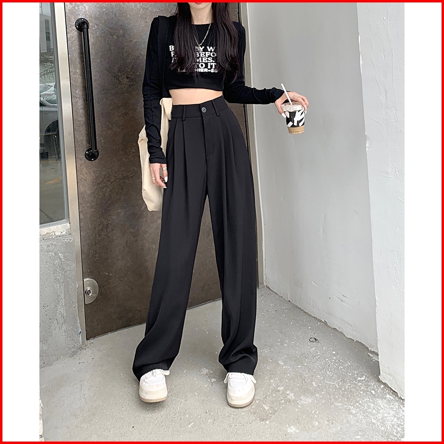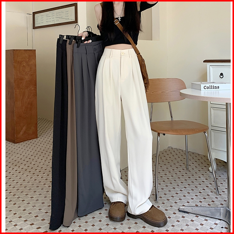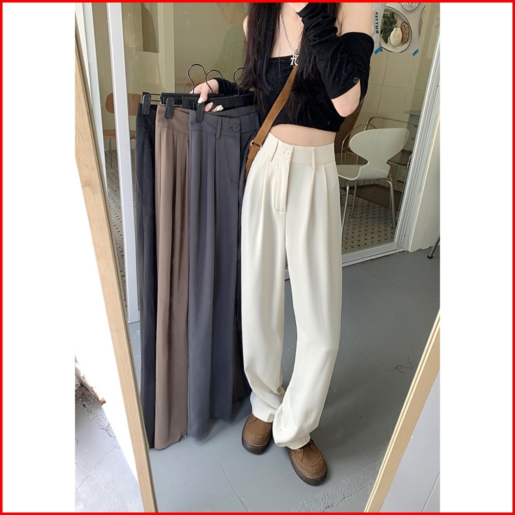 Celana Pinggang Karet Wanita Korean Style Highwaist Straight Wide Leg Celana Kulot Putih Causual Baggy Polos Kekinian Pr