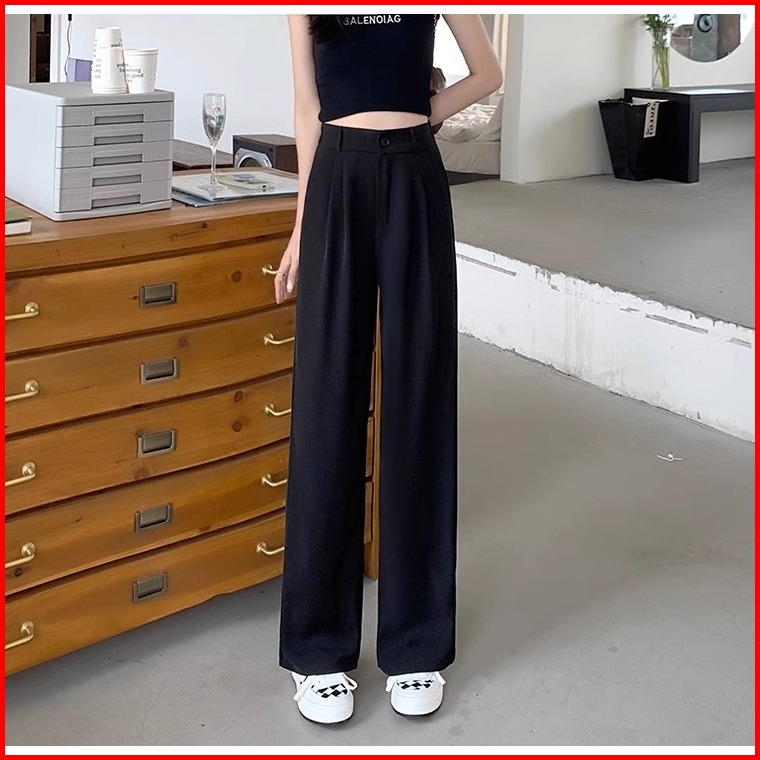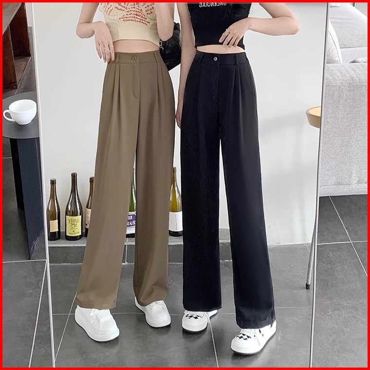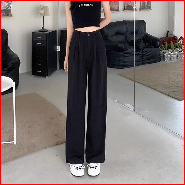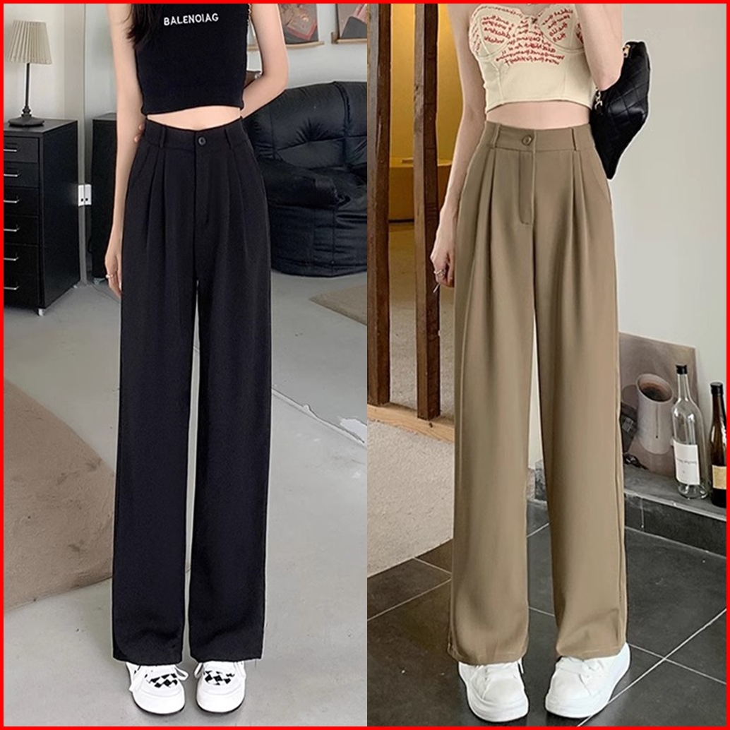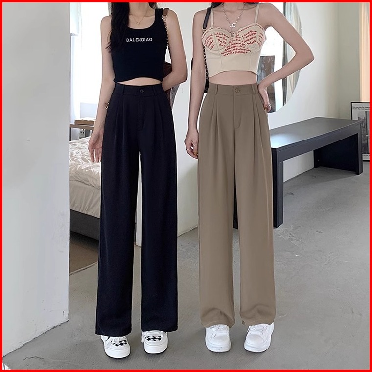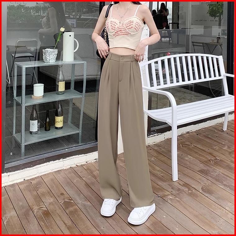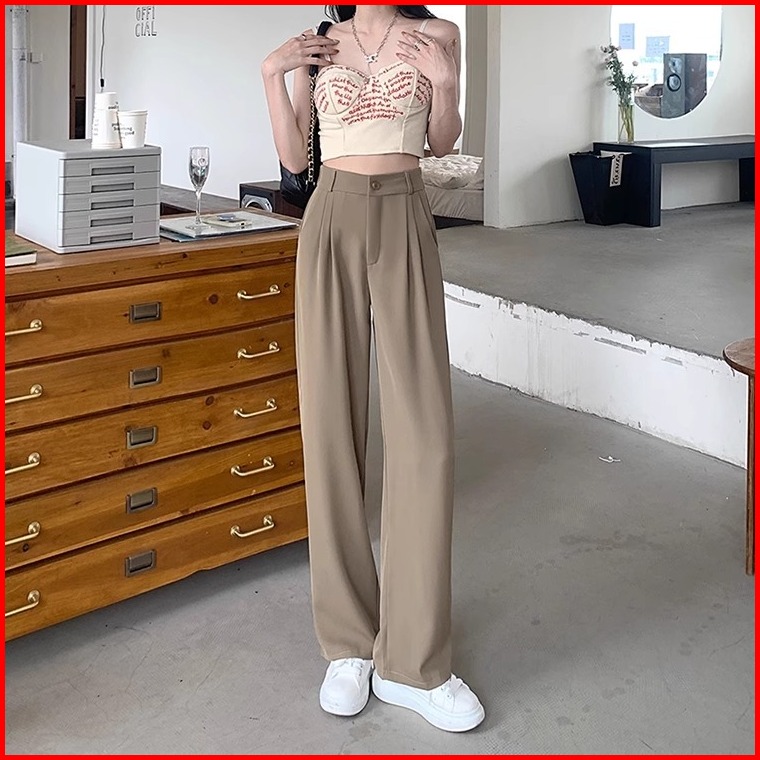 Celana Wanita Korean Style High Waist Wanita Waist Slim Lurus Kulot Kasual Loose Celana Pants Celana Kulot Celana Panjan