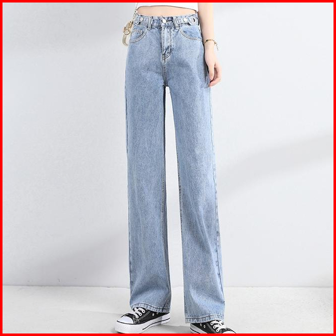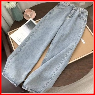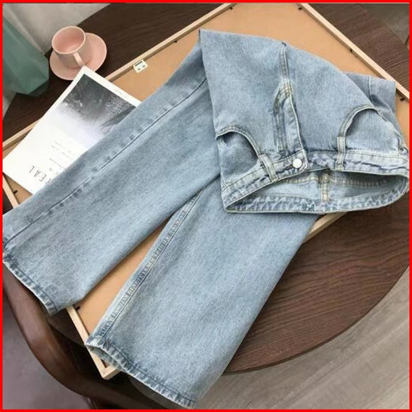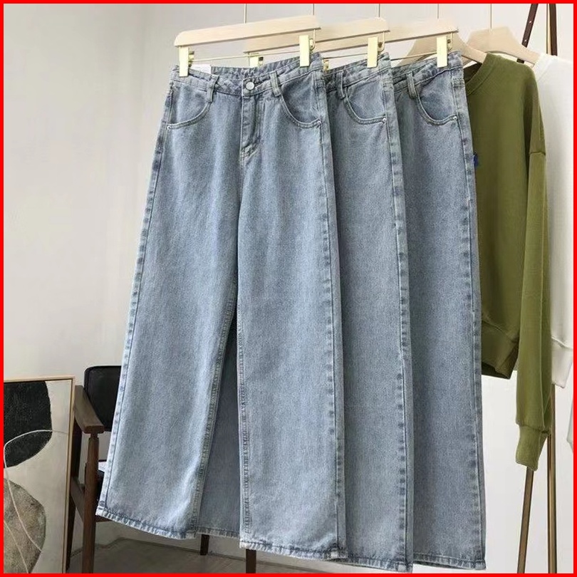 High Waist Korean Style Celana Panjang Kulot Straight Jeans Wanita Kekinian Baggy Pants Jeans