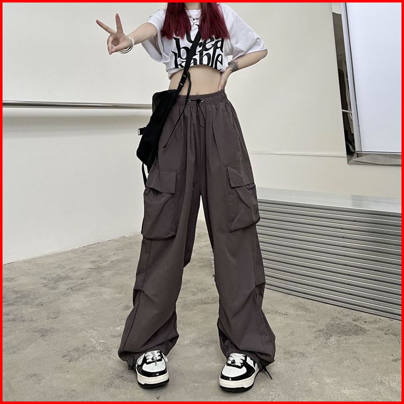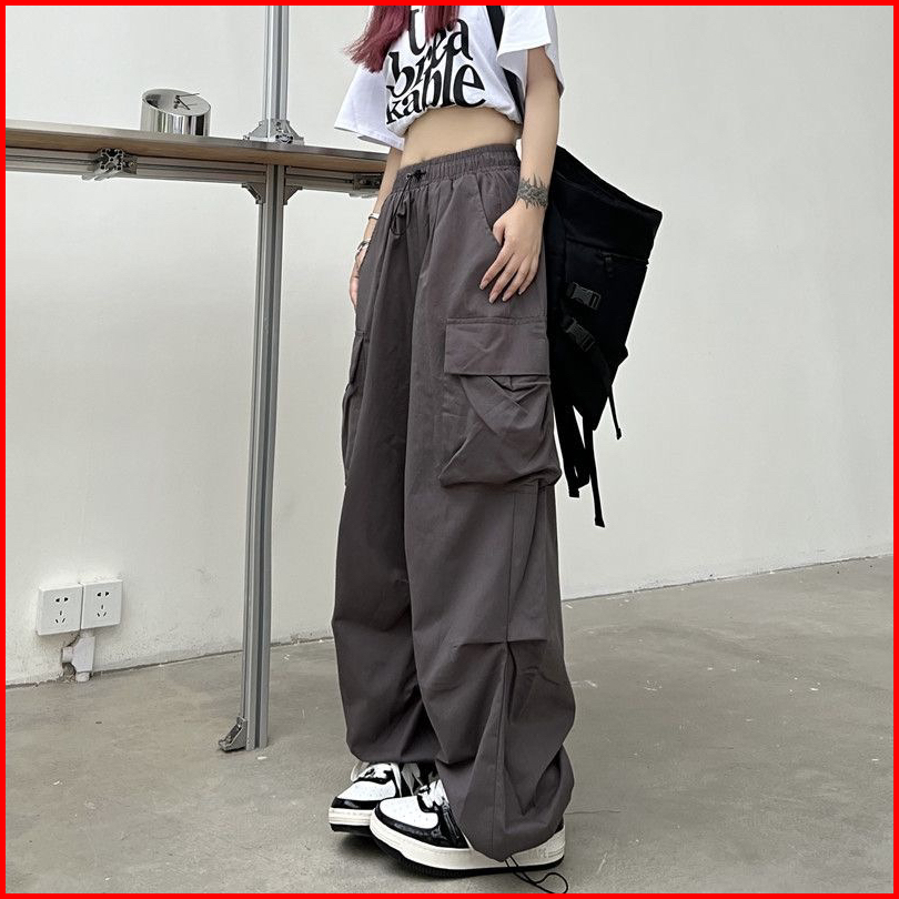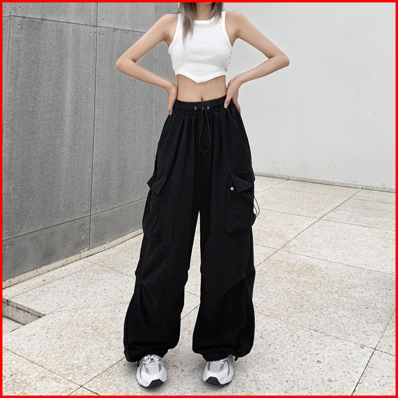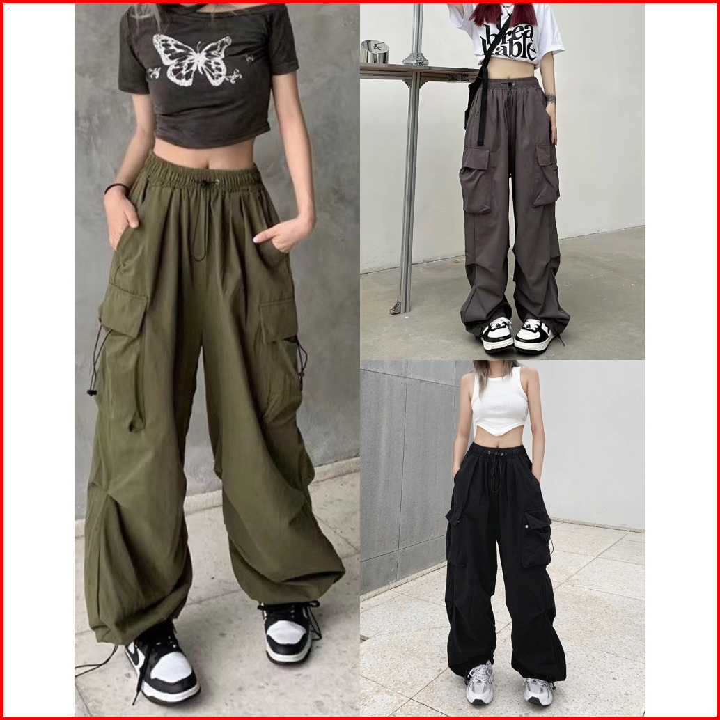 N5 - Celana Cargo Wanita Korea Highwaist Import Serut Oversize Gio Cargo Pants