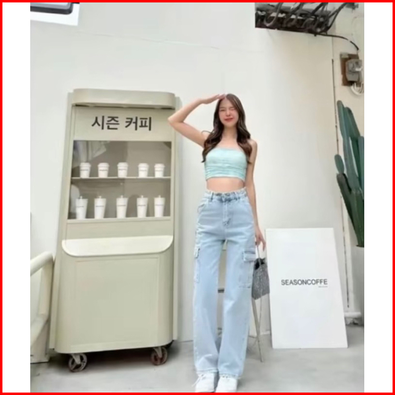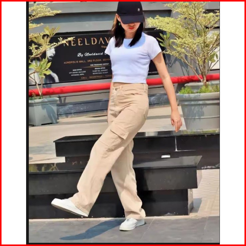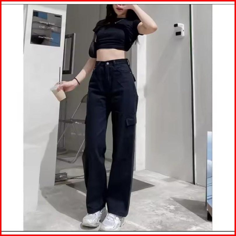 Celana Cargo Highwaist Loose Jeans Wanita Warna Kulot Cargo Higwaist Helena