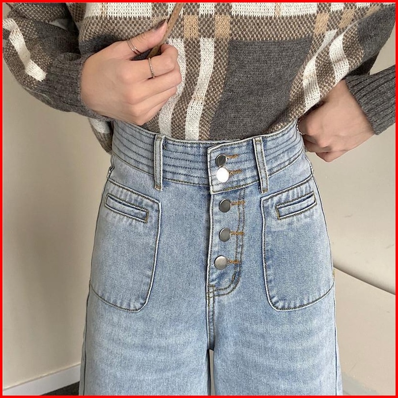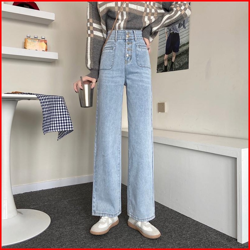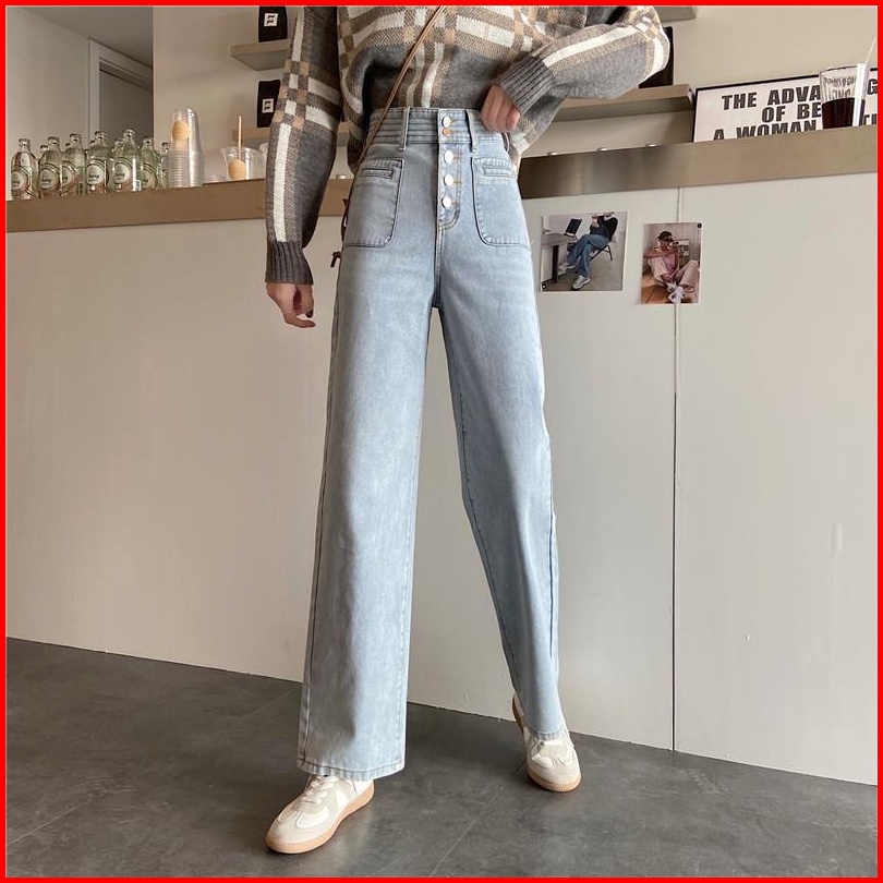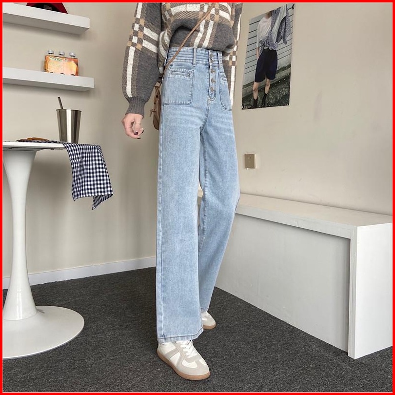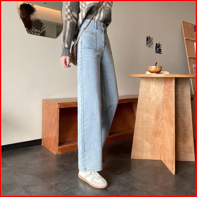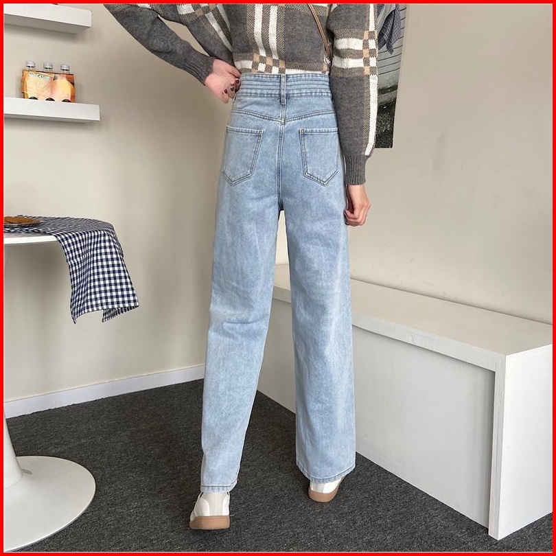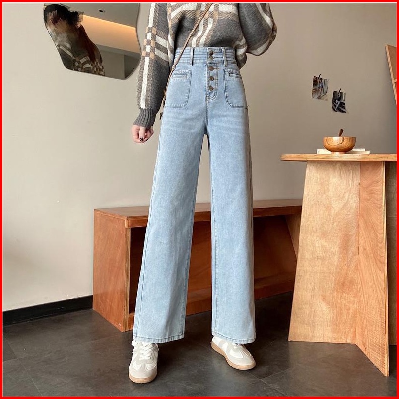 Celana Jeans Wanita Pinggang Tinggi Kaki Lebar