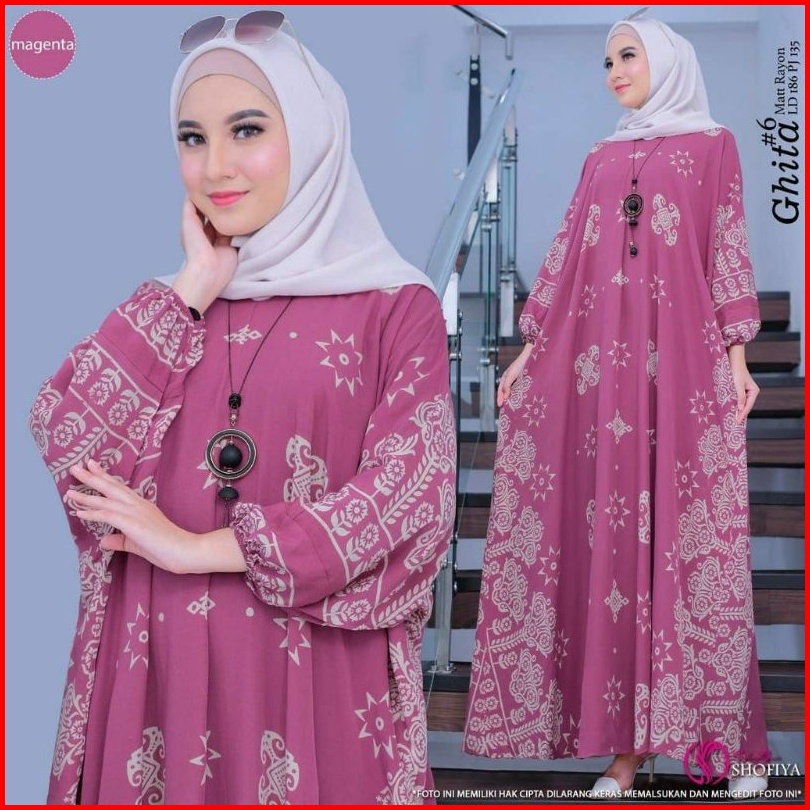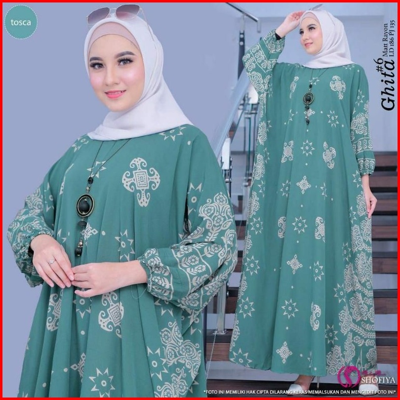 Kaftan Wanita - Githa Kaftan Kondangan Jumbo Maksi Kaftan Batik Cap Printing Busui Lengan Panjang Soft Color Rayon Premi