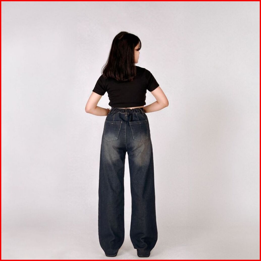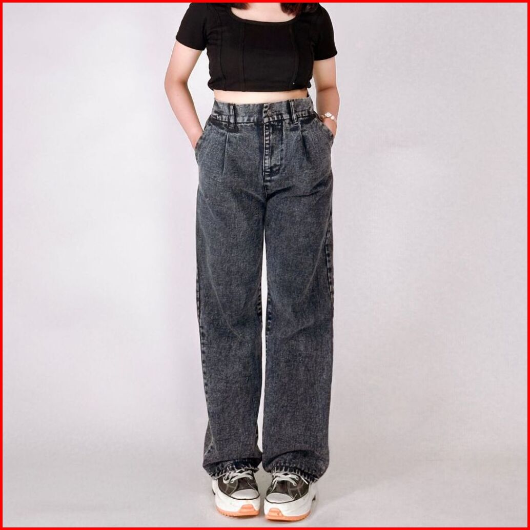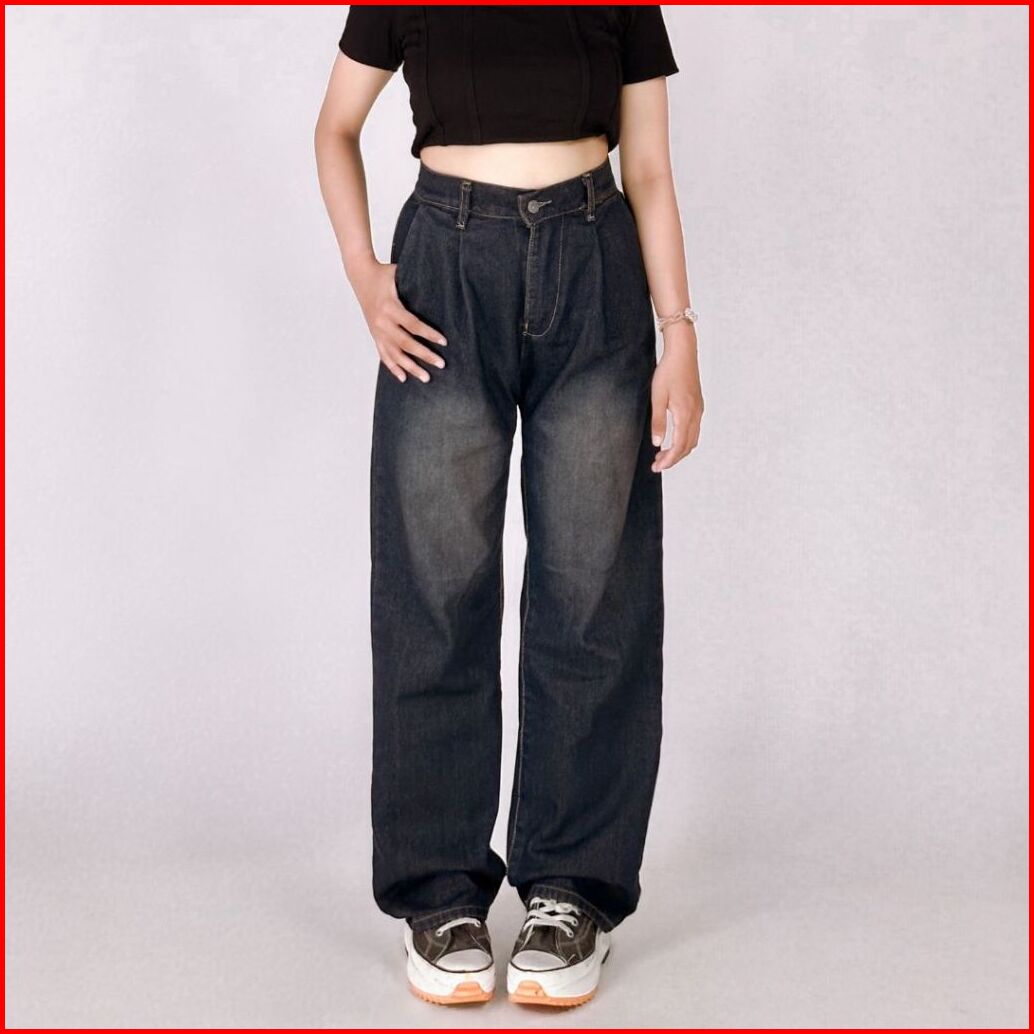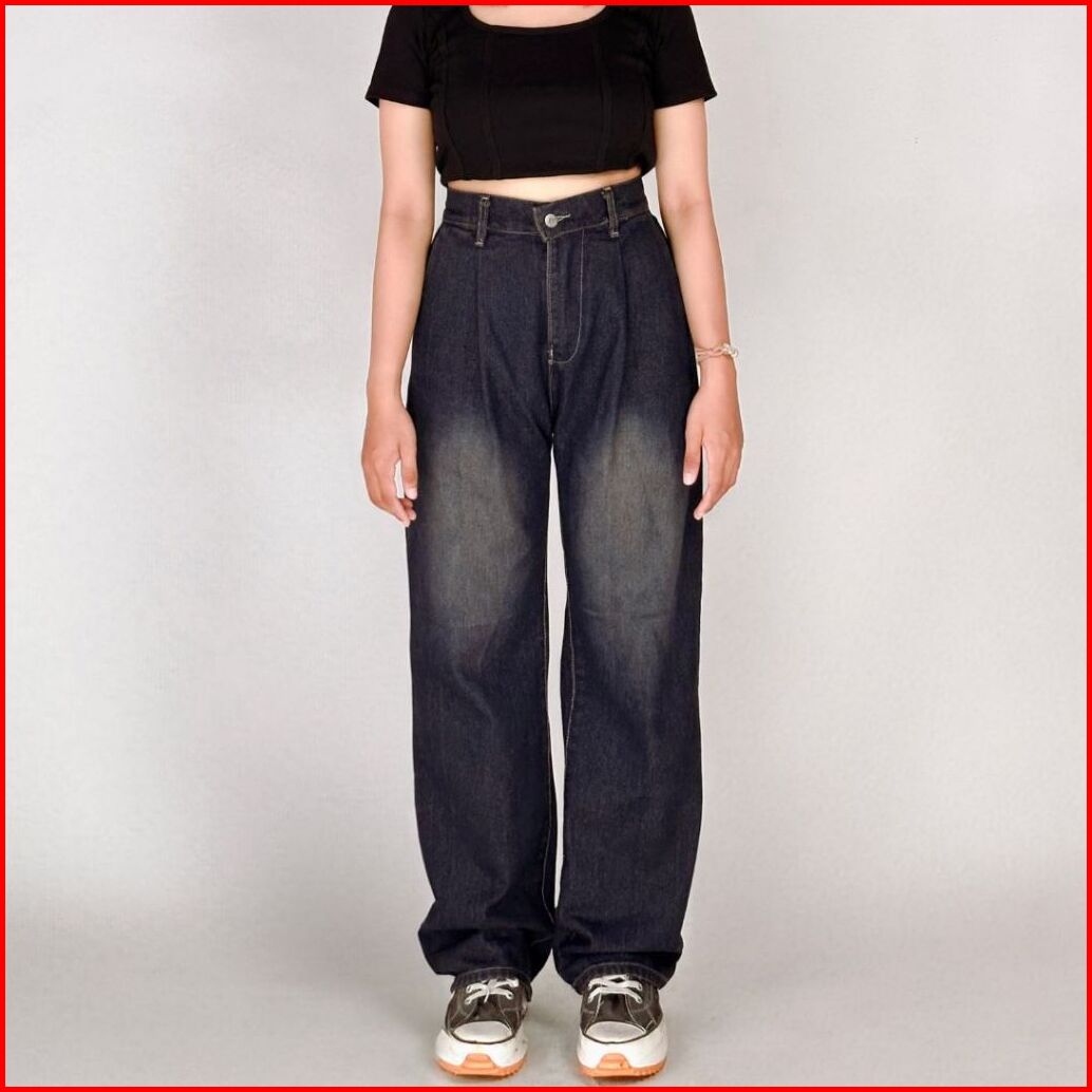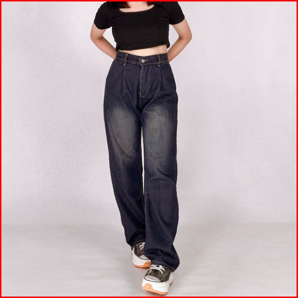 Celana Highwaist Baggy Loose Jeans Celana Lipit Denim Drapey