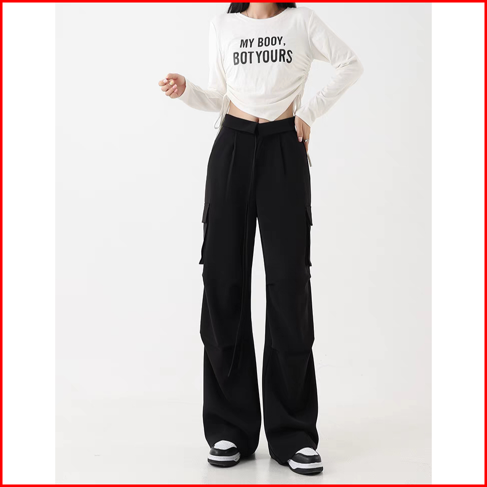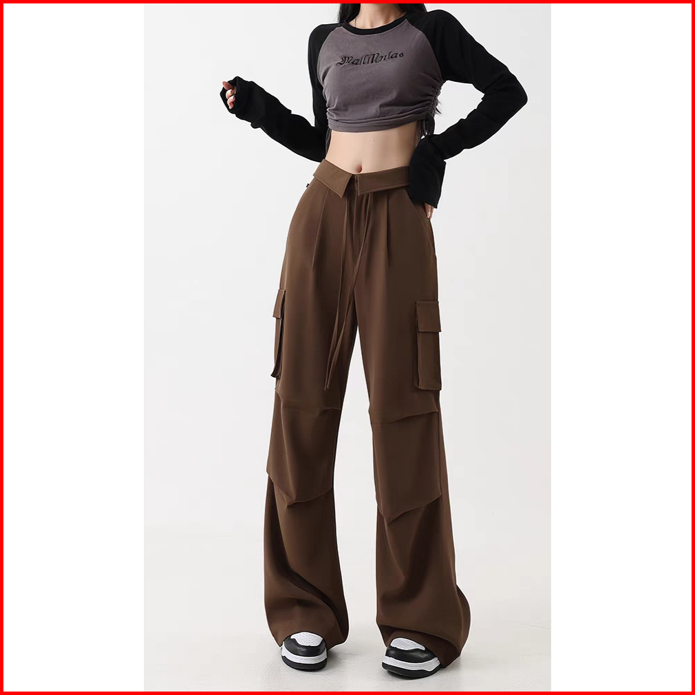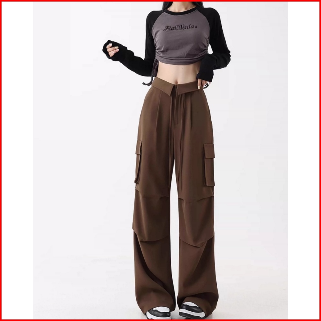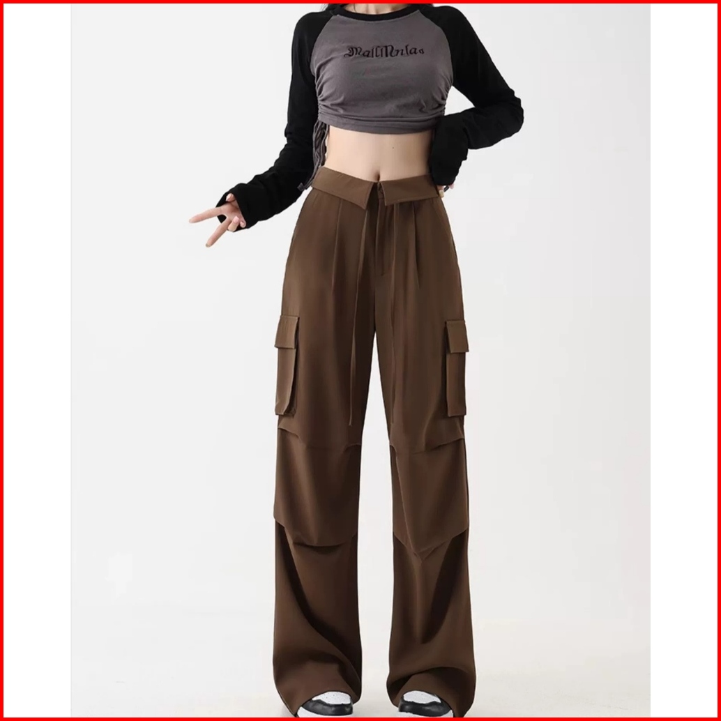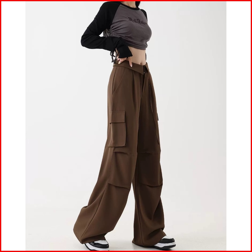 Celana Wanita Korea Kekinian Loose Celana High Waist Wanita Fashion Street Style