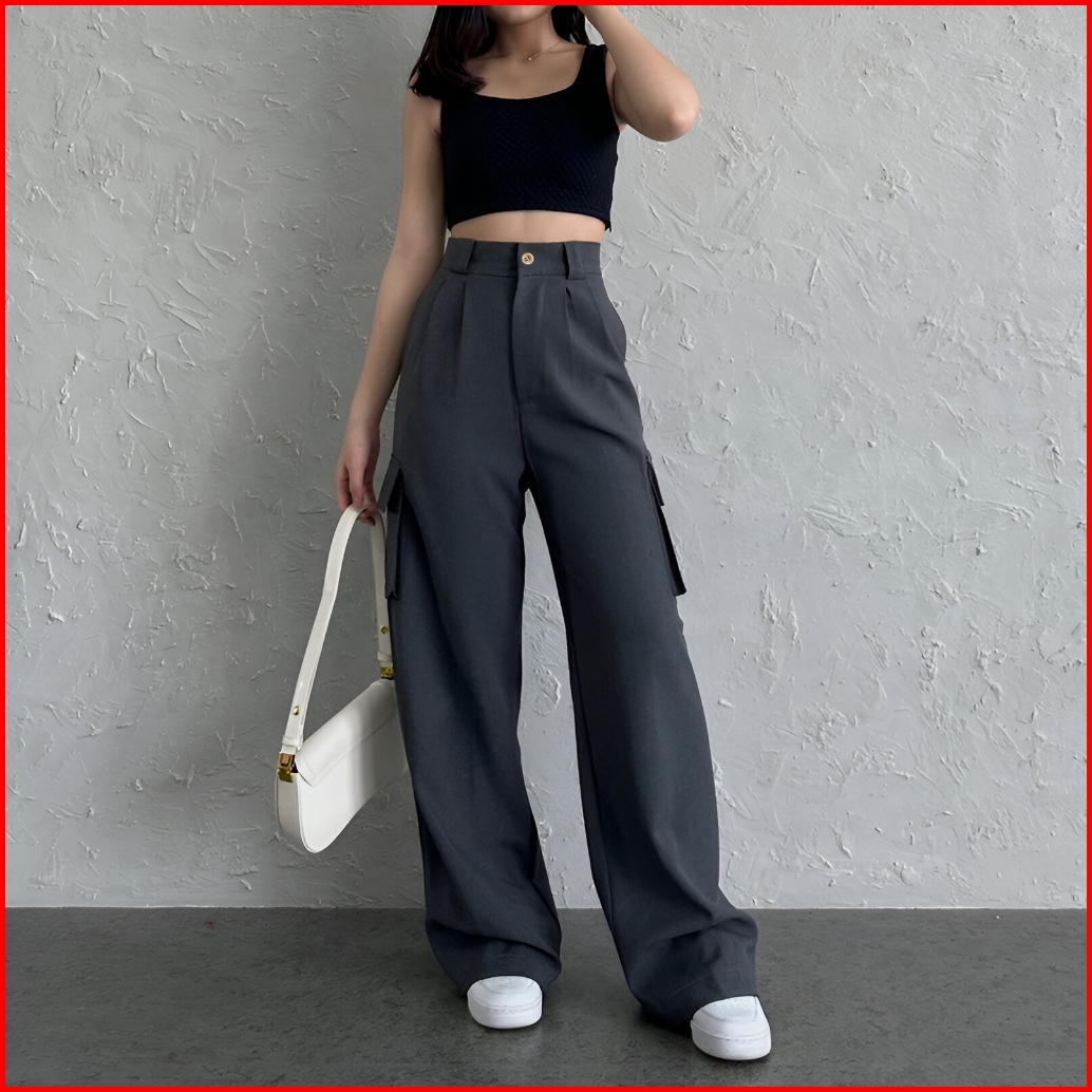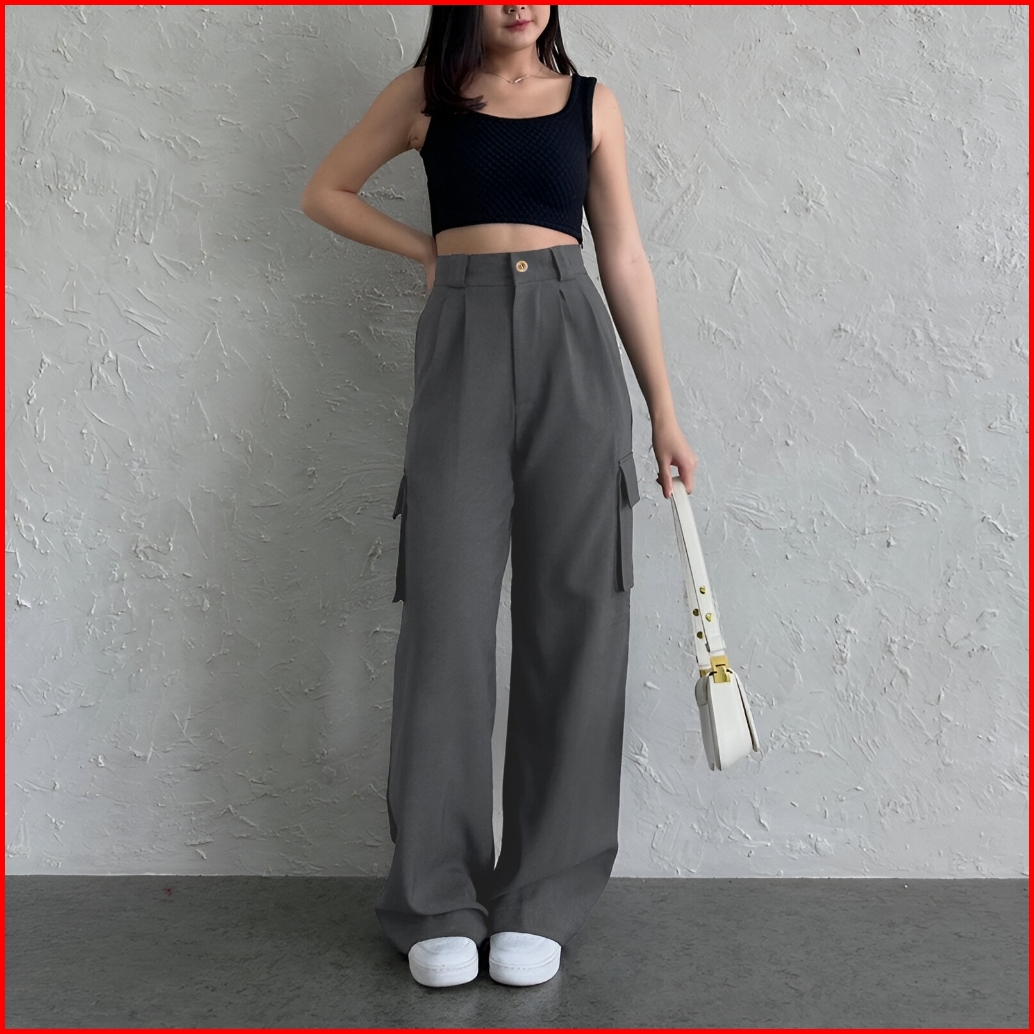 Celana Cargo Wanita Twill Combed Highwaist Premium Jumbo Cargo Pants Wanita Terbaru Celana Kulot Kargo Wanita