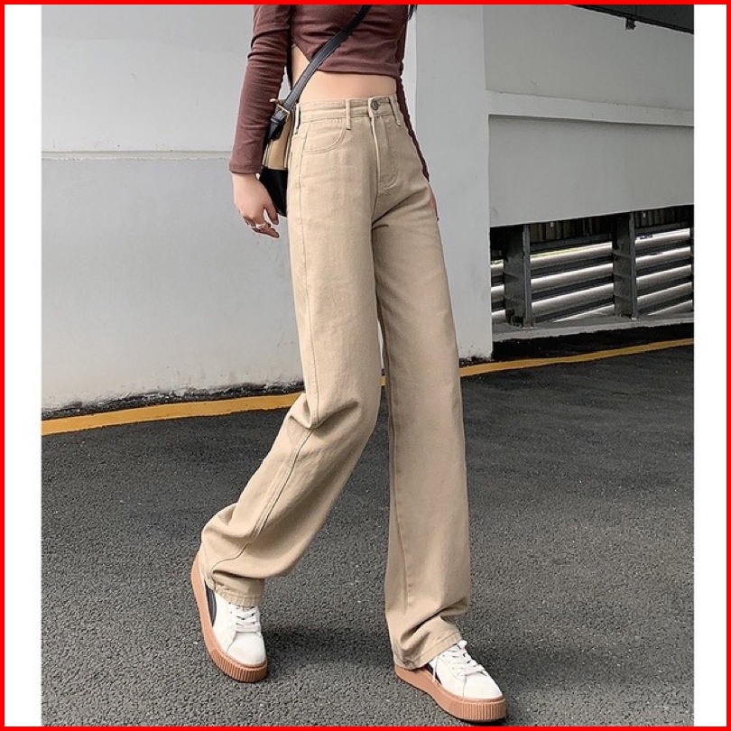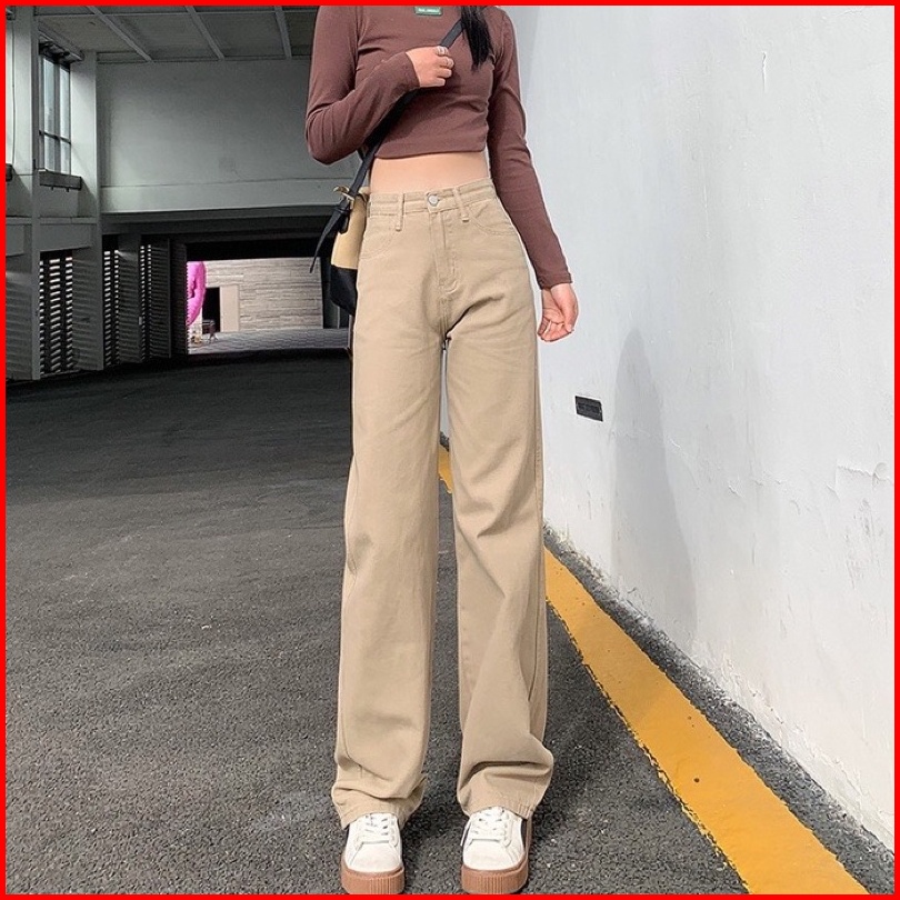 Celana Jeans Wanita New Khaki Korea Highwaist Kulot Celana Jeans Panjang Wanita Kekinian
