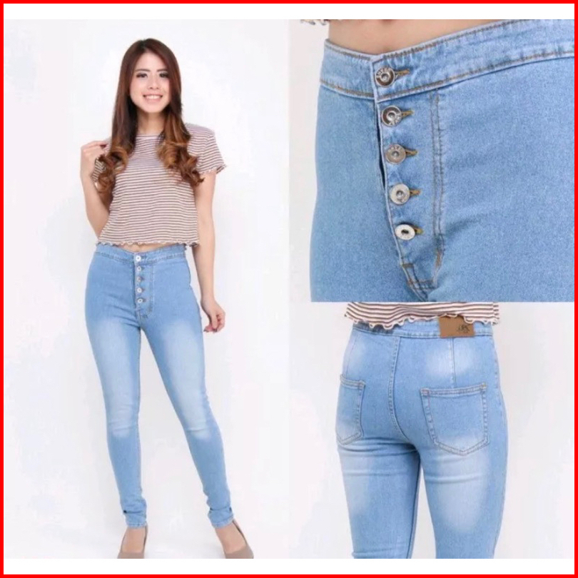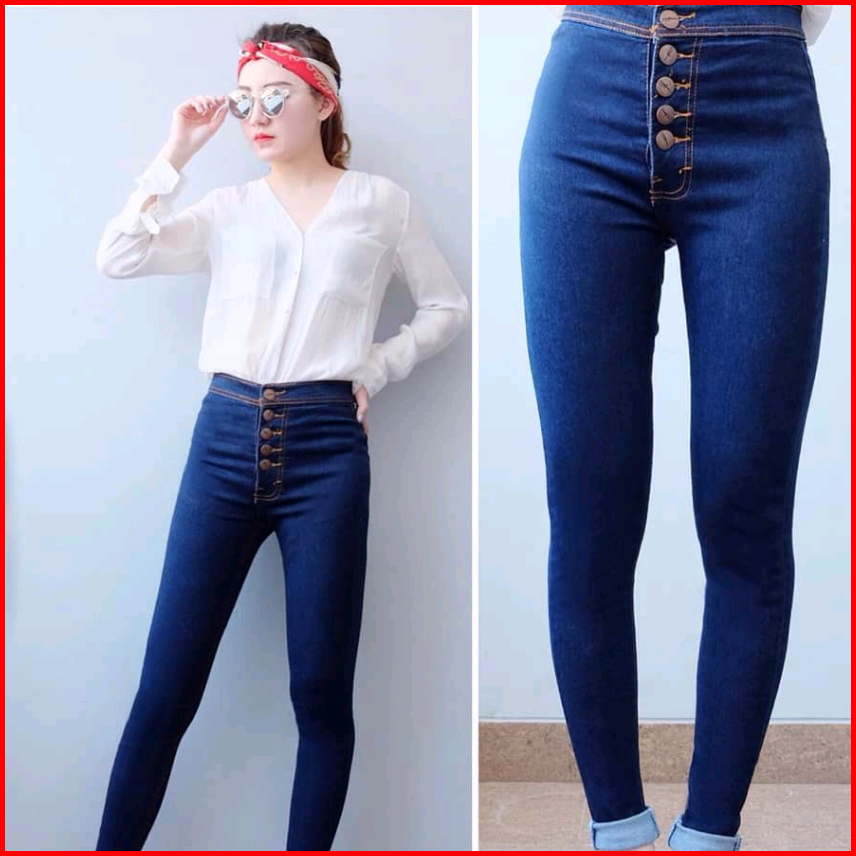 Celana Panjang High Waist Kancing 5 Line Freya . Celana Panjang High Waist Button Highwenist