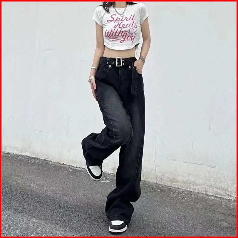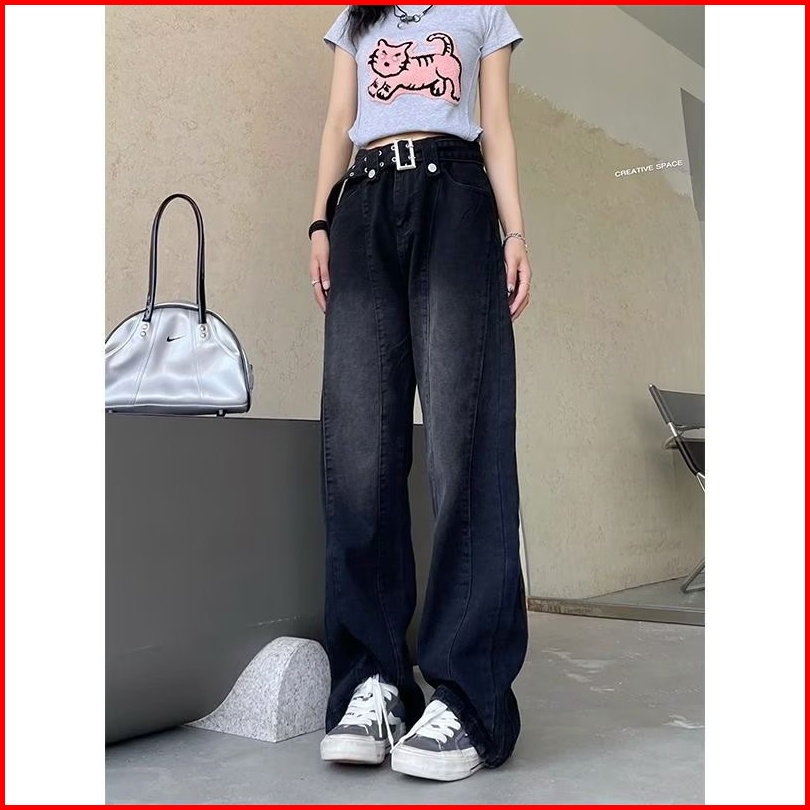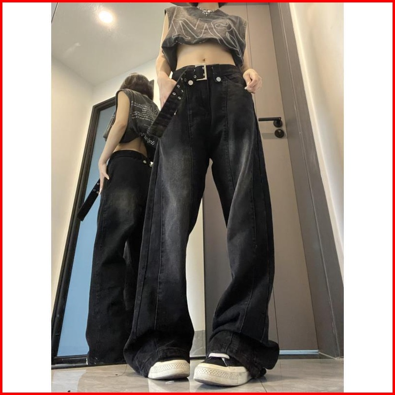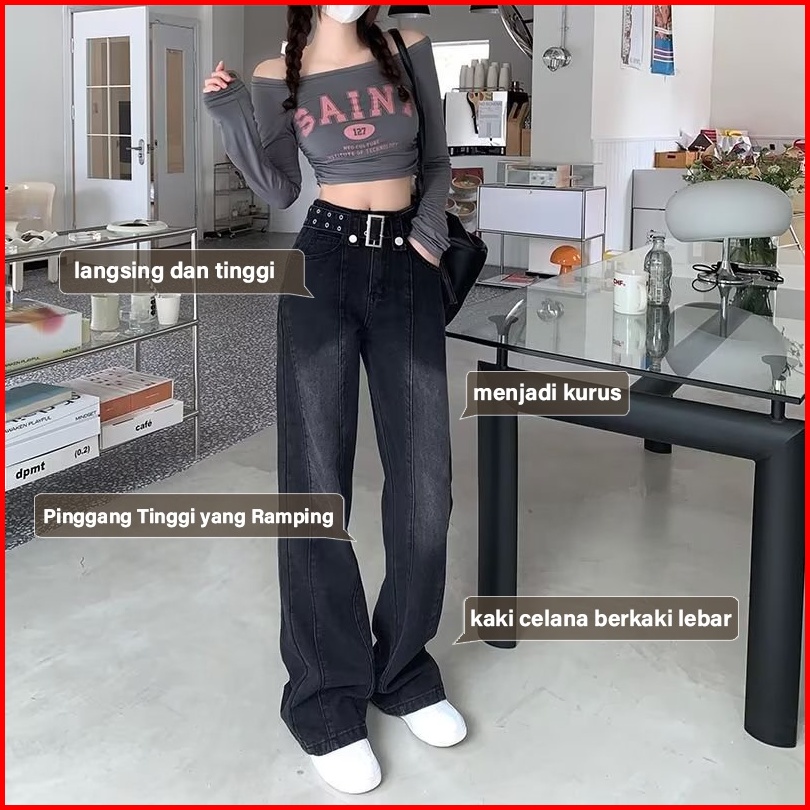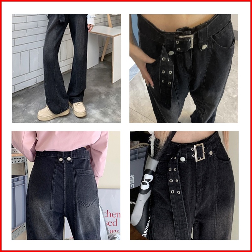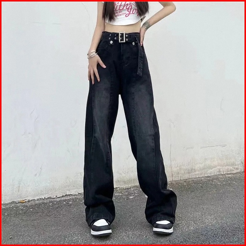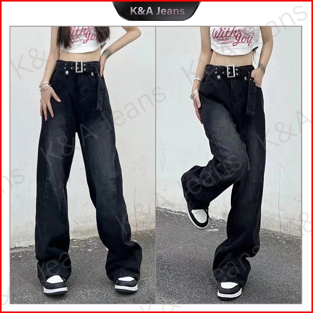 K A Jeans S-xl Sabuk Jeans Wanita Highwaist Kulot Jeans Dark Grey Jeans Abu-abu Gelap Jeans Celana Panjang Lebar Jeans B