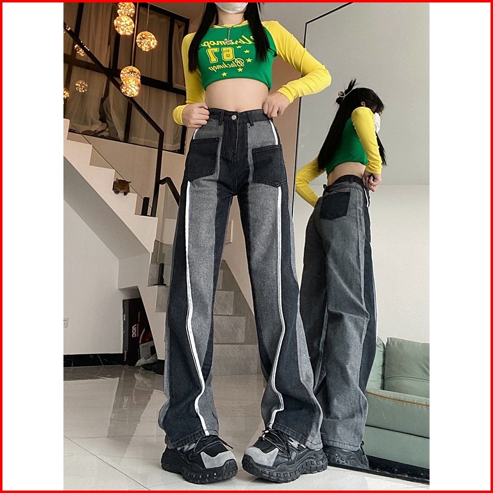 Celana Jeans Wanita Motif Vintage Hitam Abu-abu