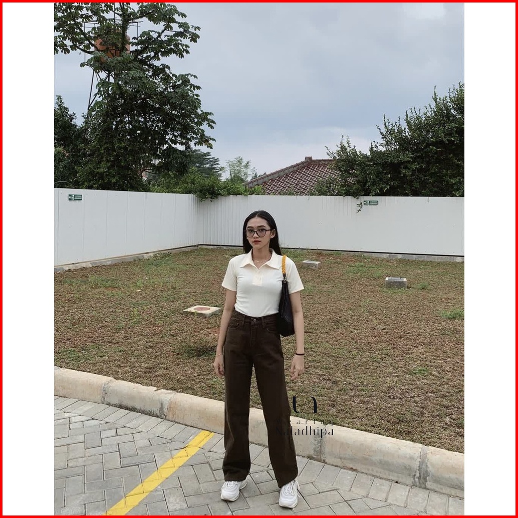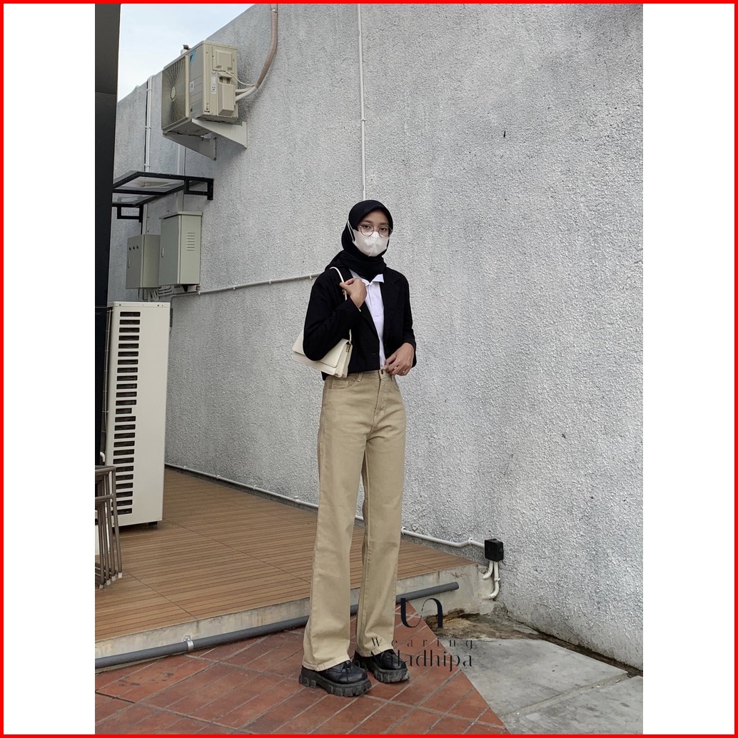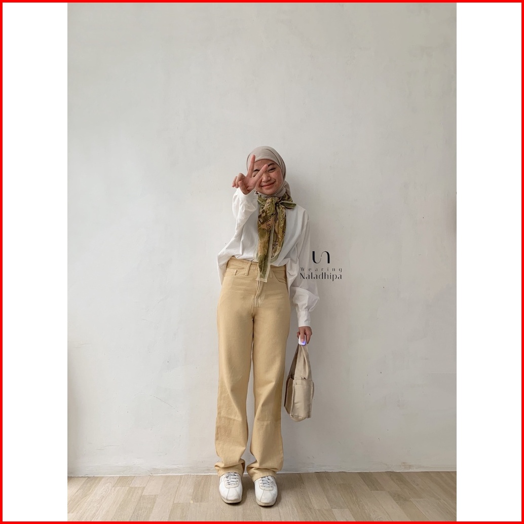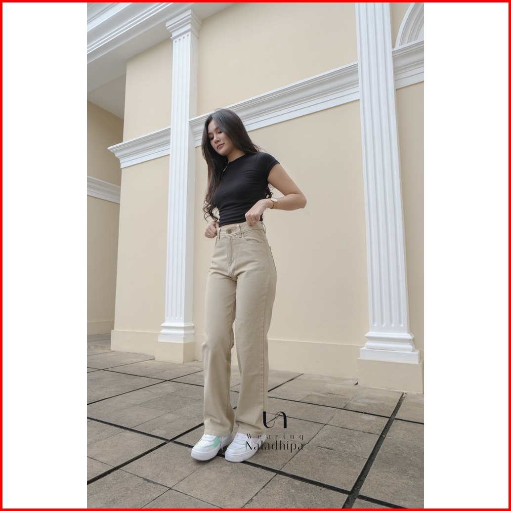 1-nara Pants Earth Tone- Celana Kulot Jeans Highwaist Wanita Loose