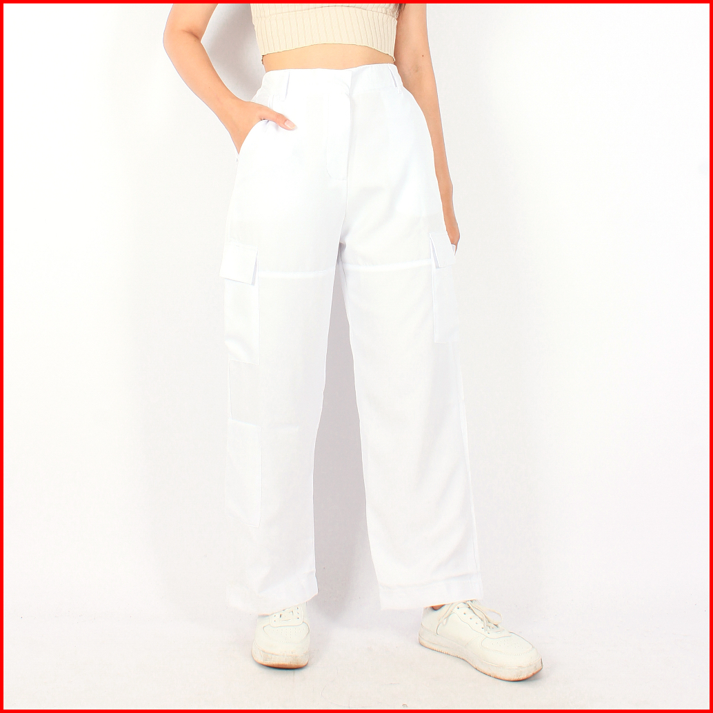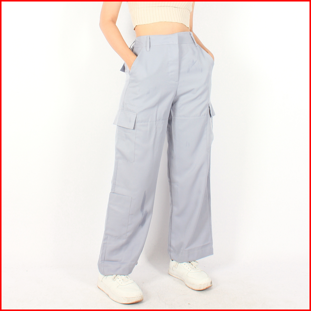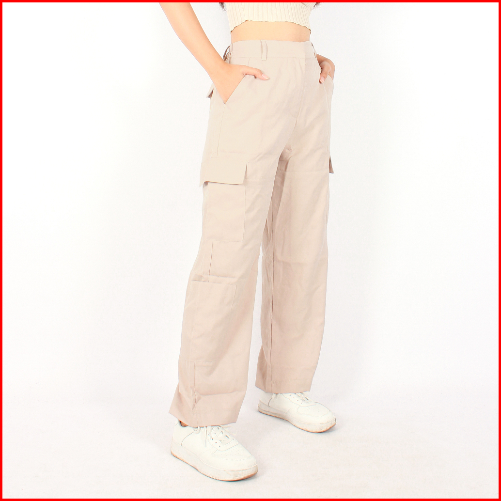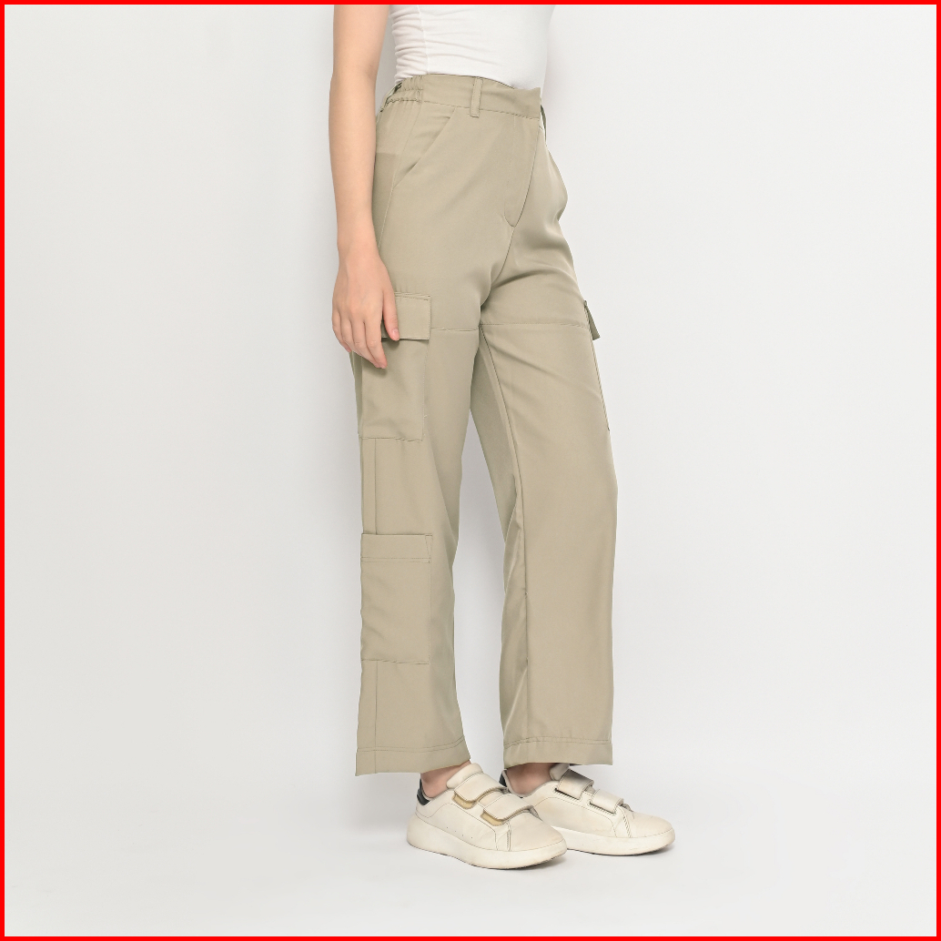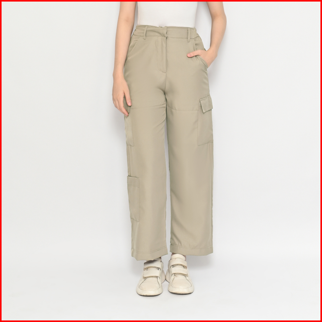 Queentin Celana Panjang Kargo Wanita 0261 Katun Napoli Polos Premium