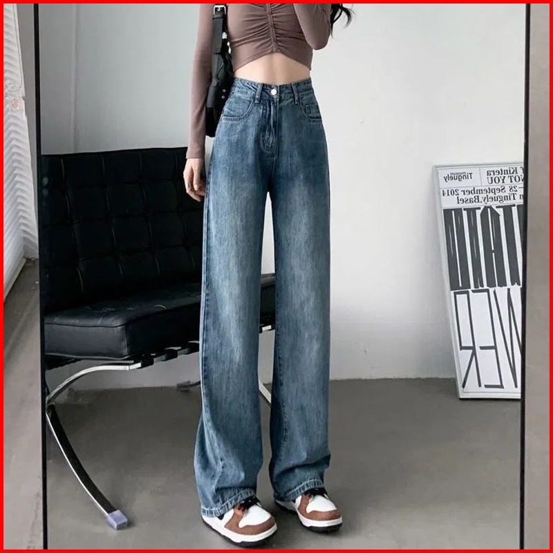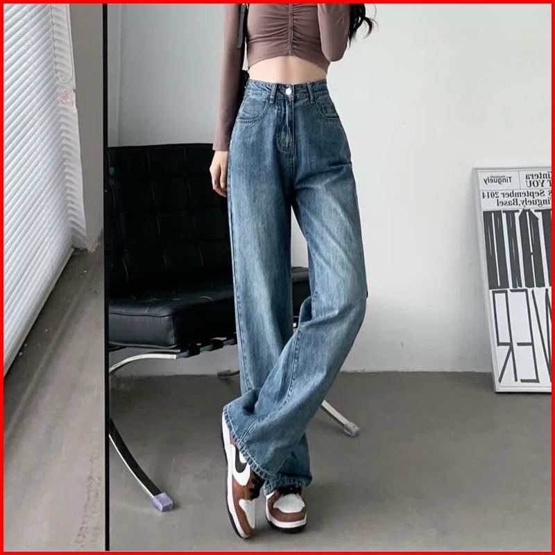Celana Panjang Jeans Wanita Kulot Highwaist Jeans Retro Import Premium Loose Jeans Korean Style