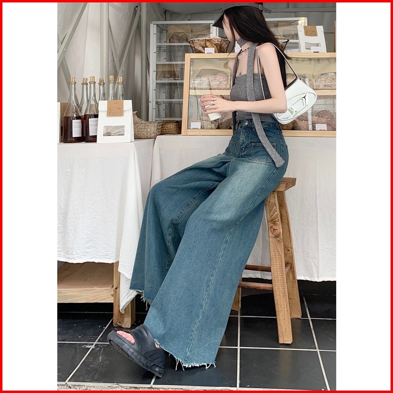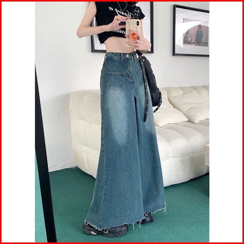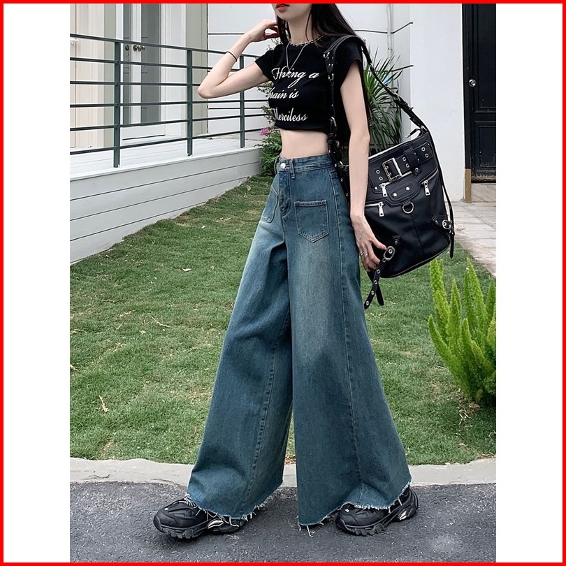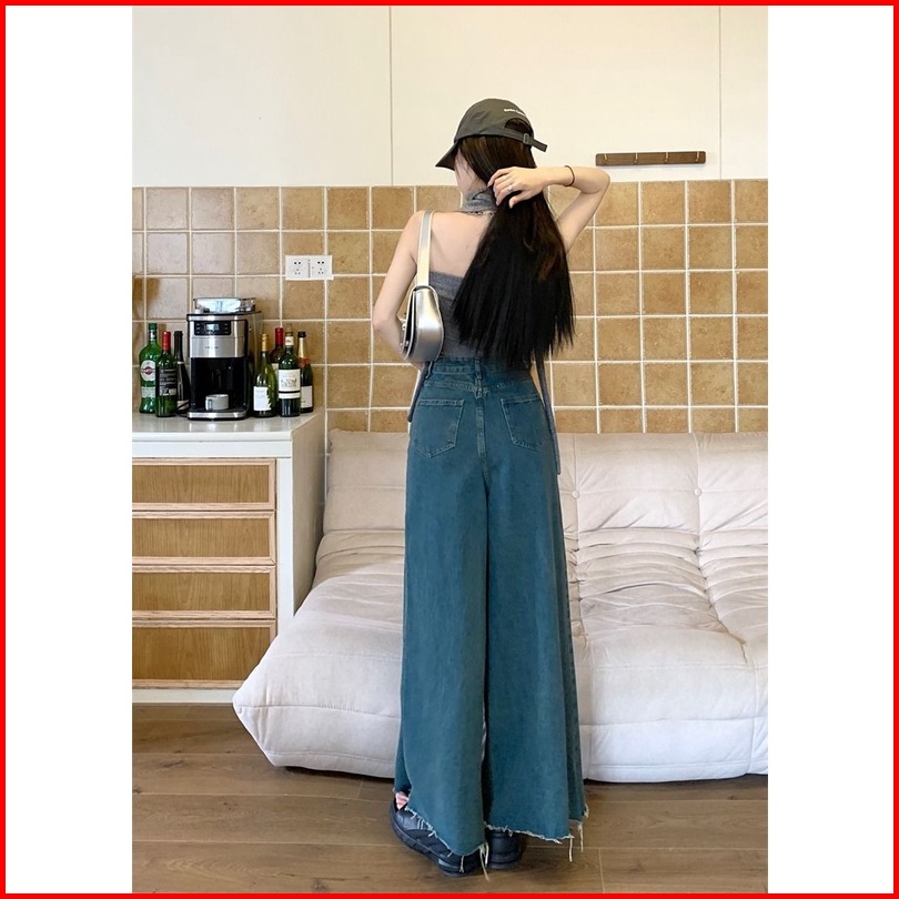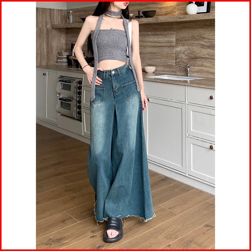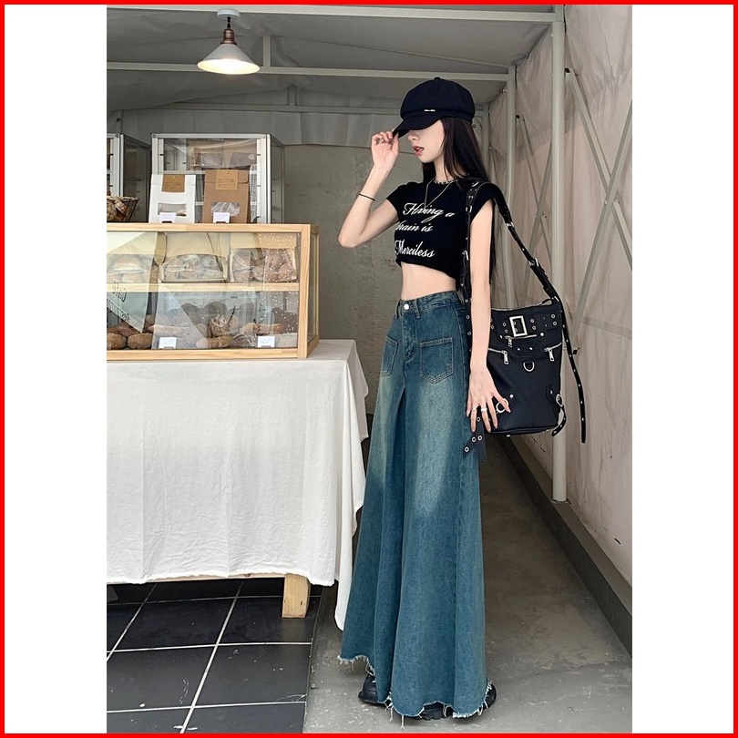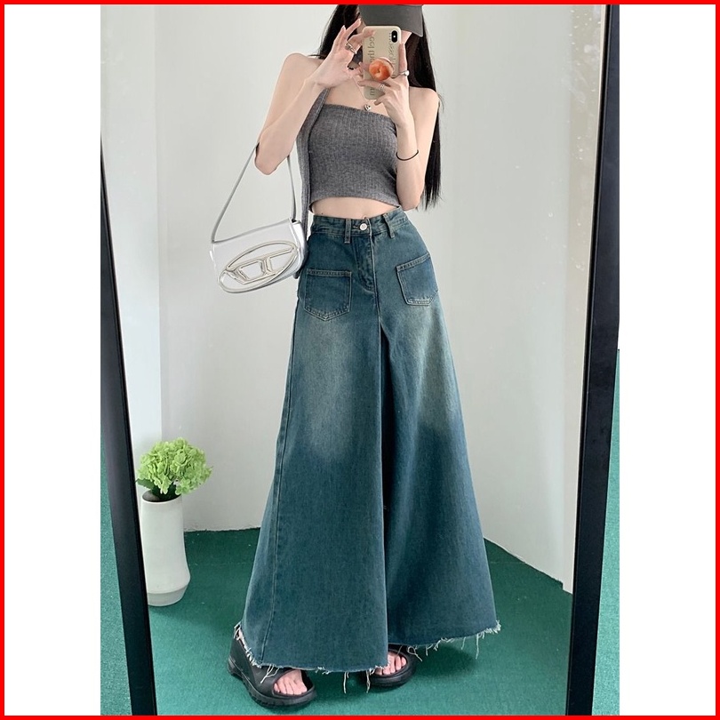 Celana Rok Jeans Lebar Kaki Baru Wanita Musim Panas 2023 Dengan Desain Pinggang Tinggi Dan Tepi Longgar