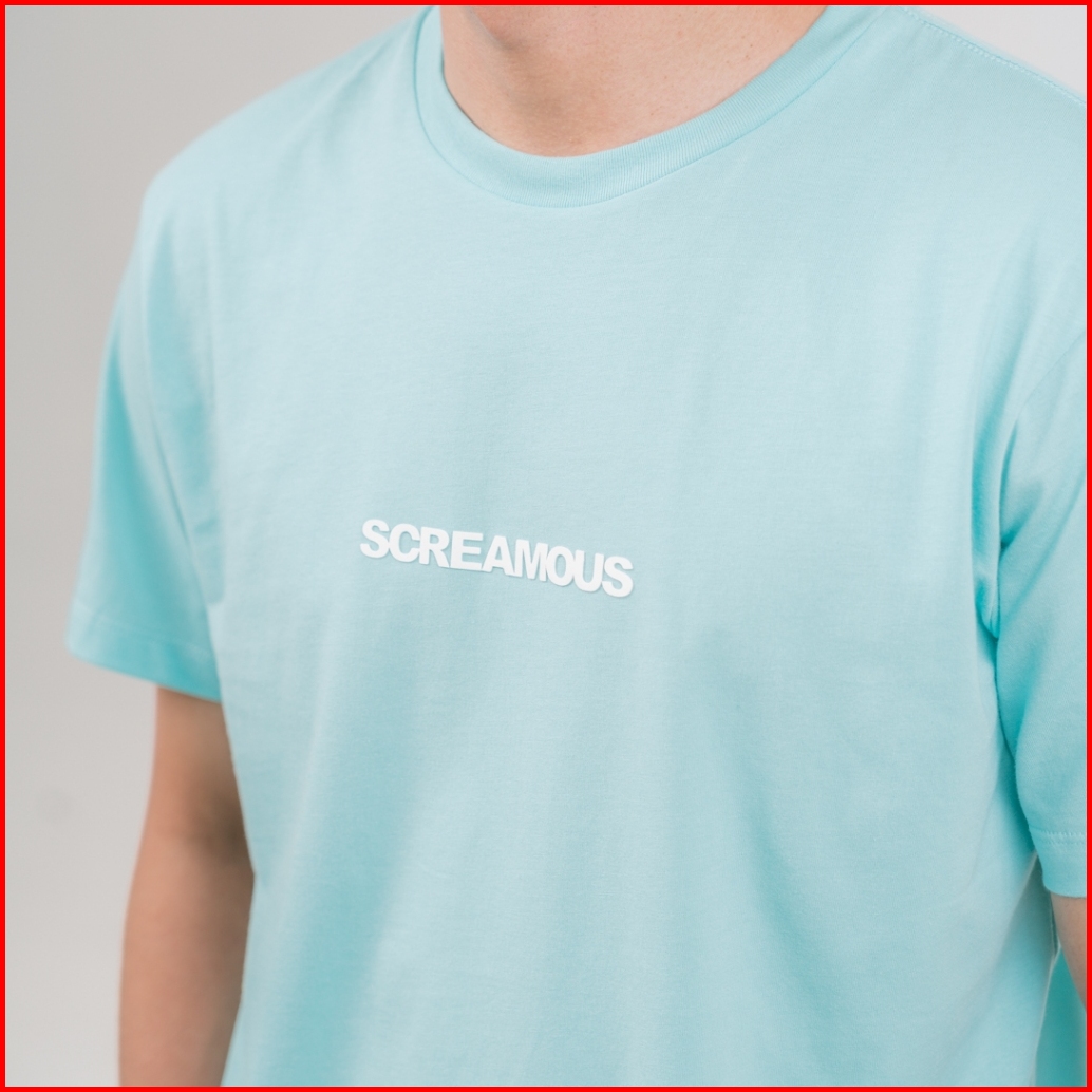 Screamous Kaos T-shirt Legend Tiny On White Aqua Sky