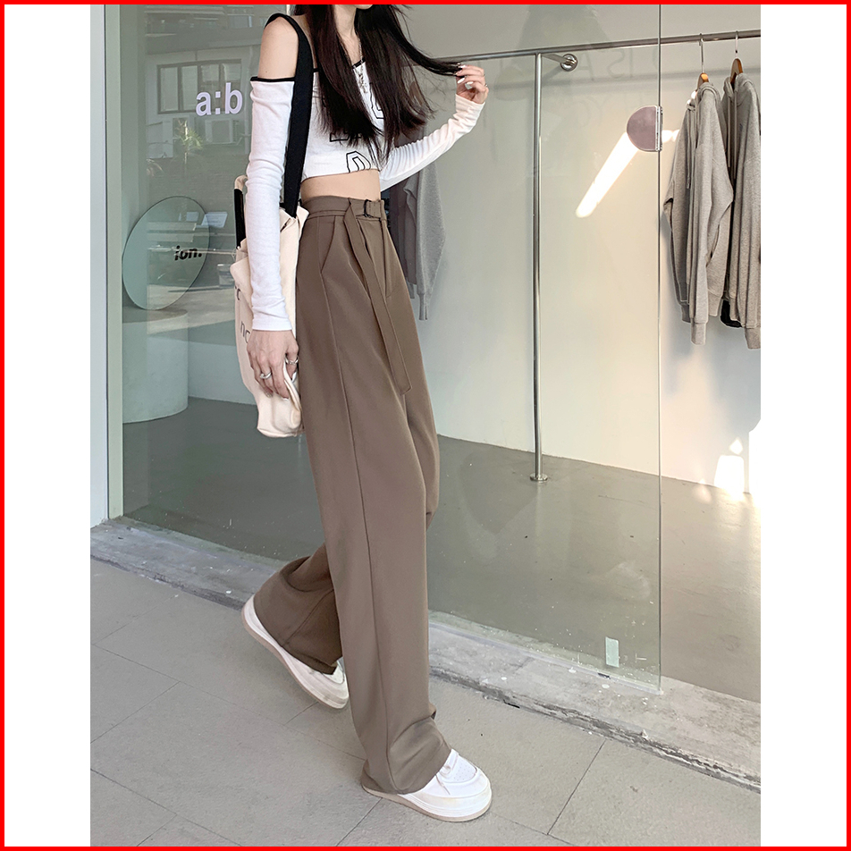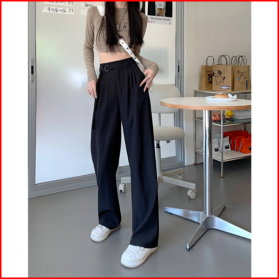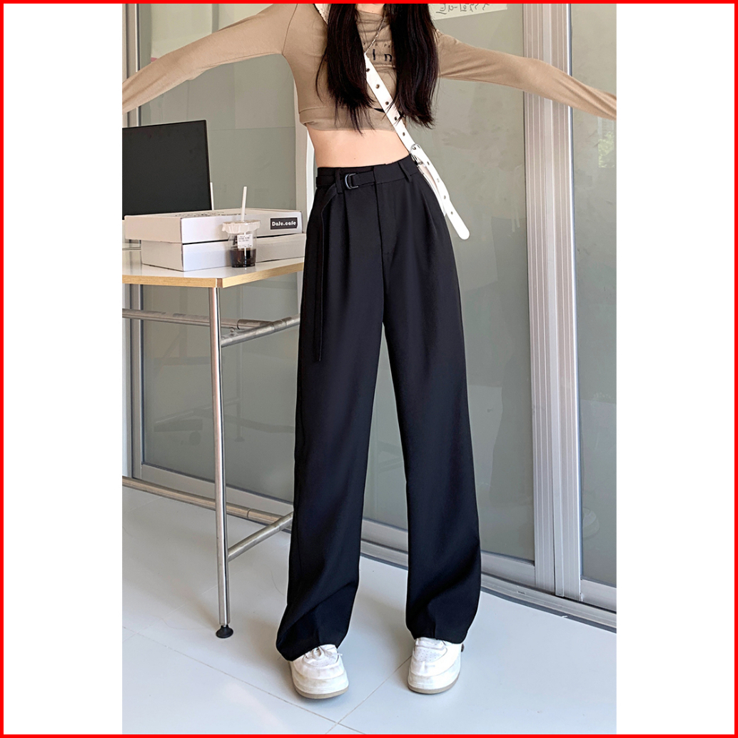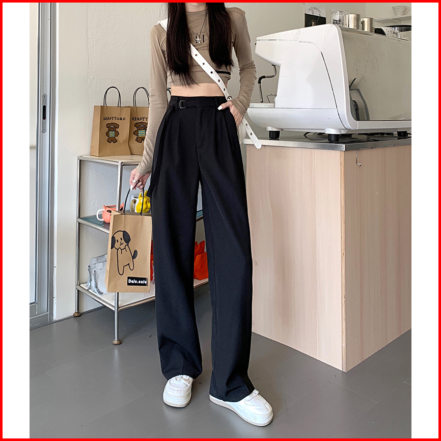 Eunii Celana Panjang Wanita Loose High Waist Hitam Pants Korean Style