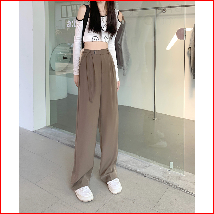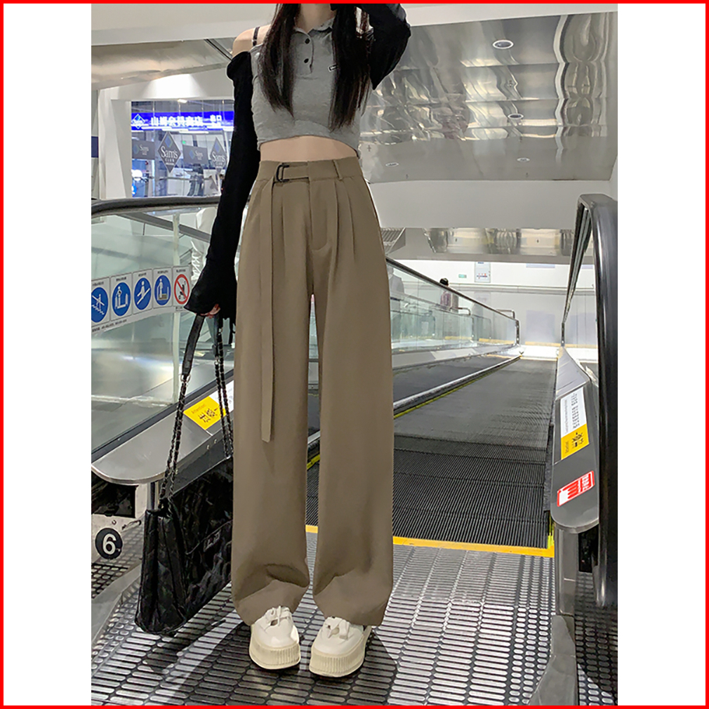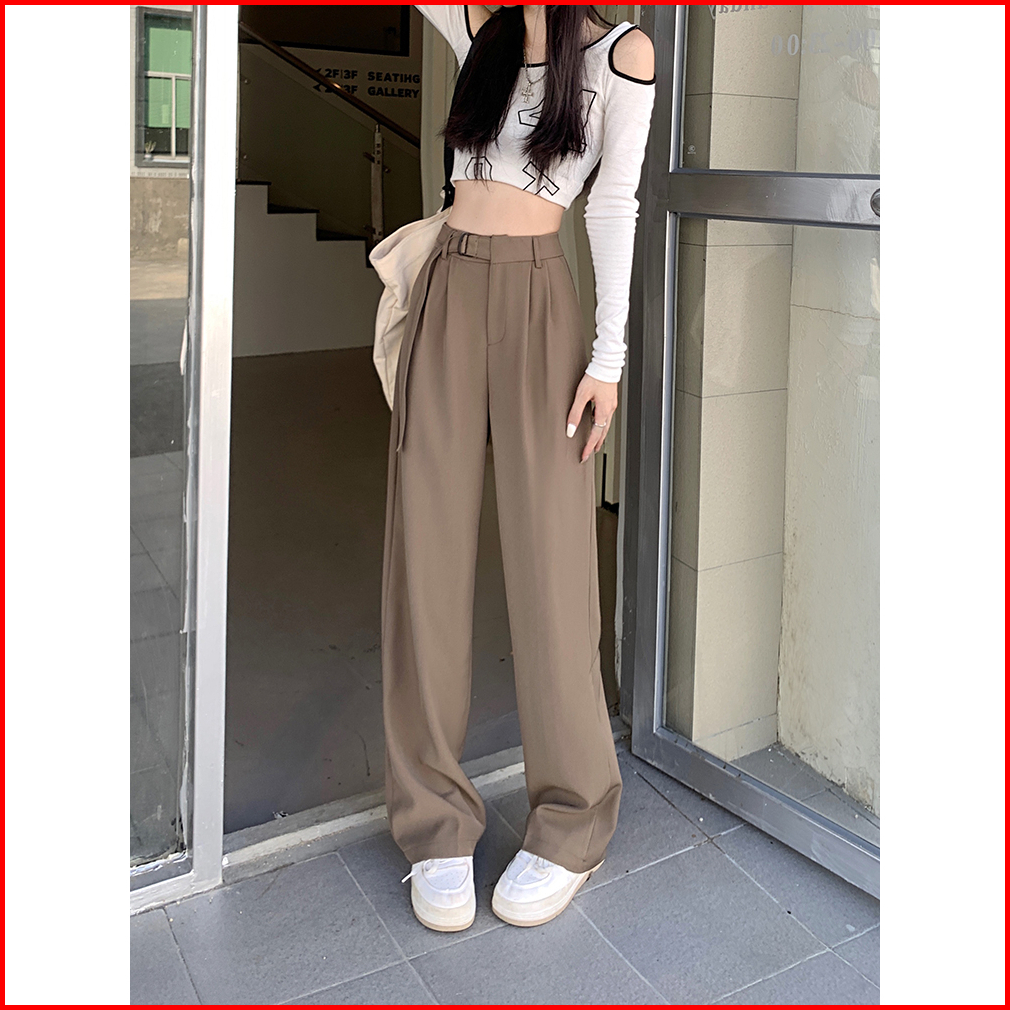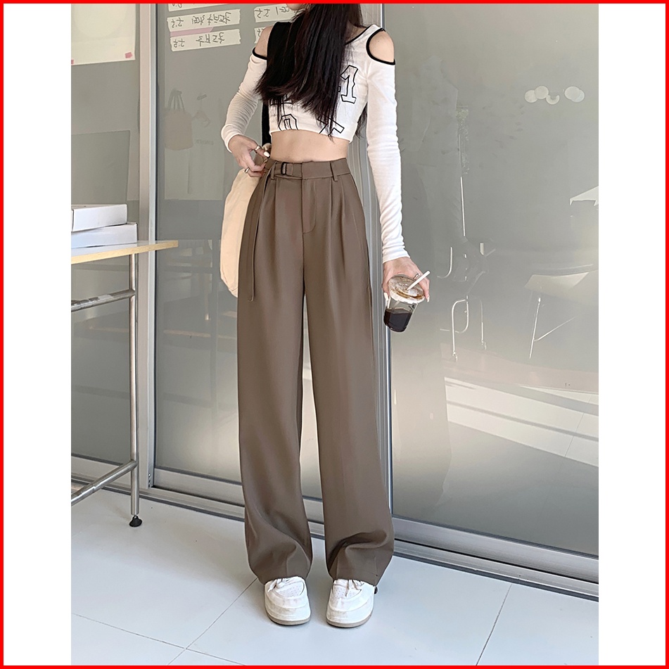 Eunii Celana Panjang Wanita Loose High Waist Hitam Pants Korean Style
