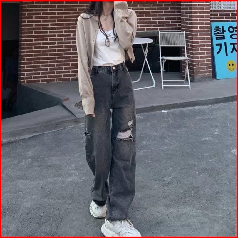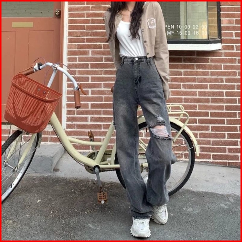 Haigh Waist Jeans Kulot Loose Wanita Masakini