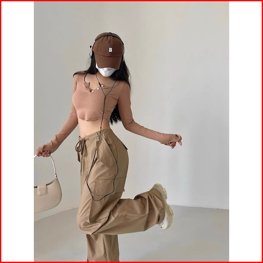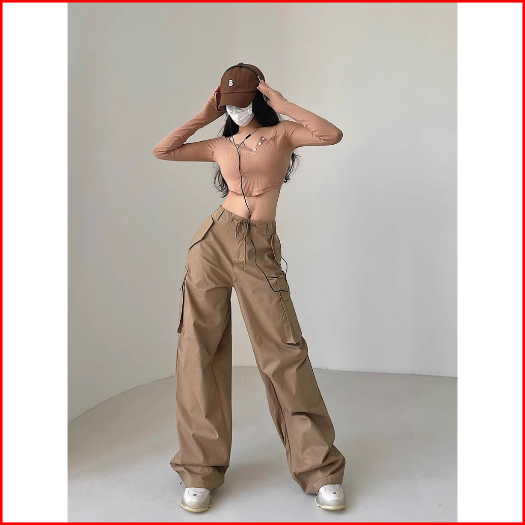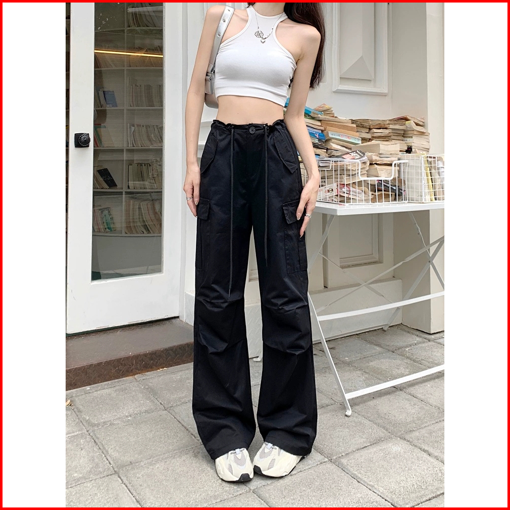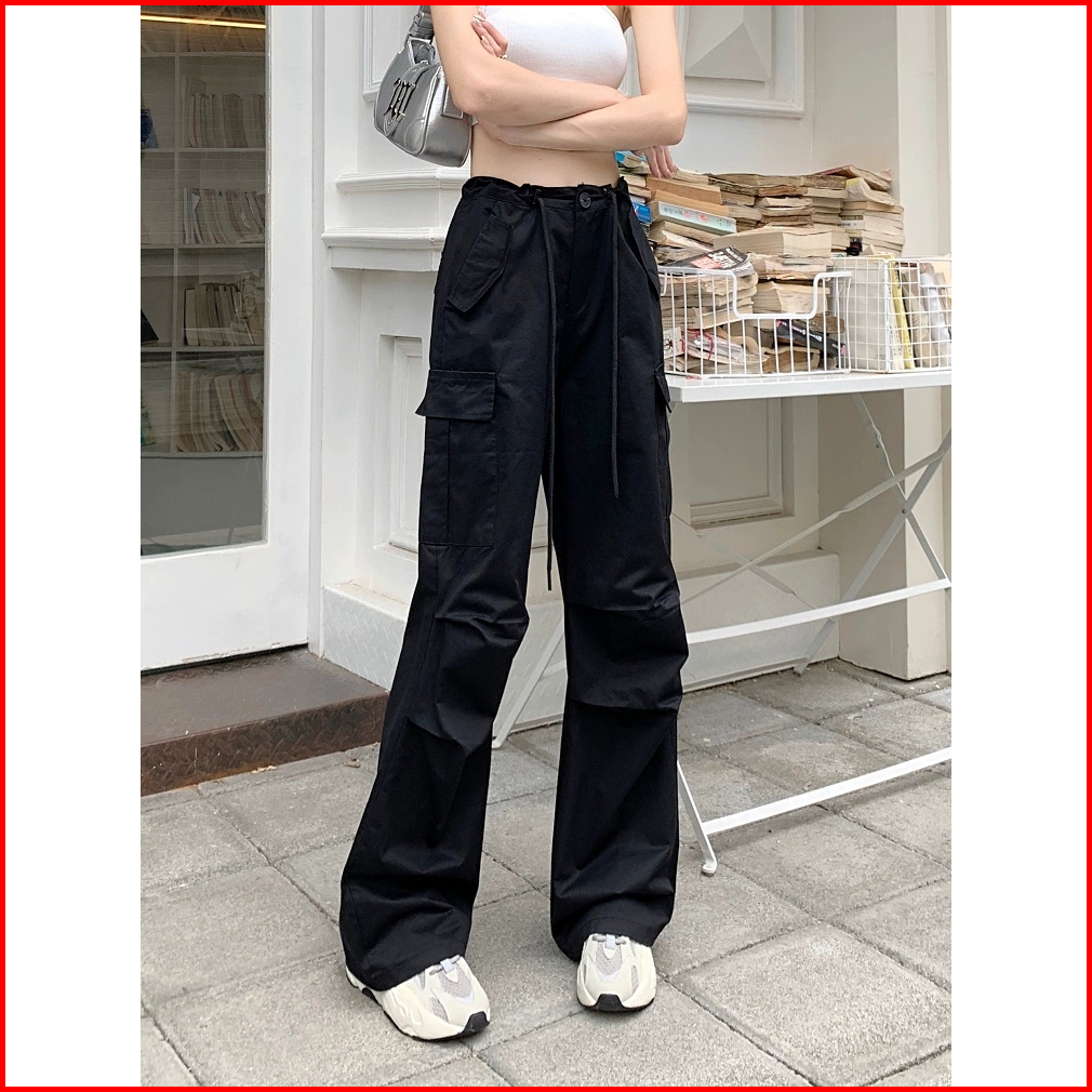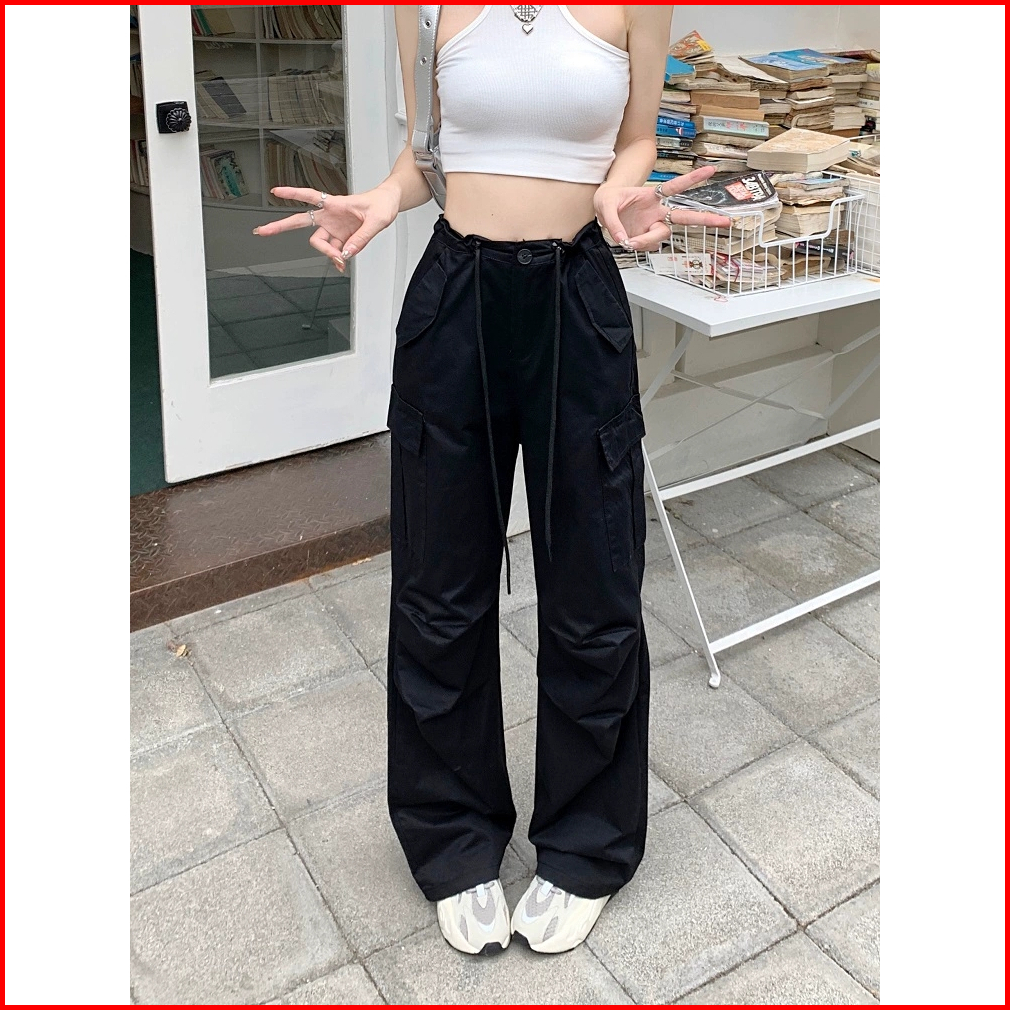 Celana Kulot Fashion Street Style Korea Style Drawstring Loose Celana High Waist Wanita