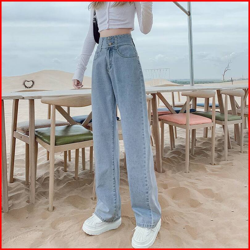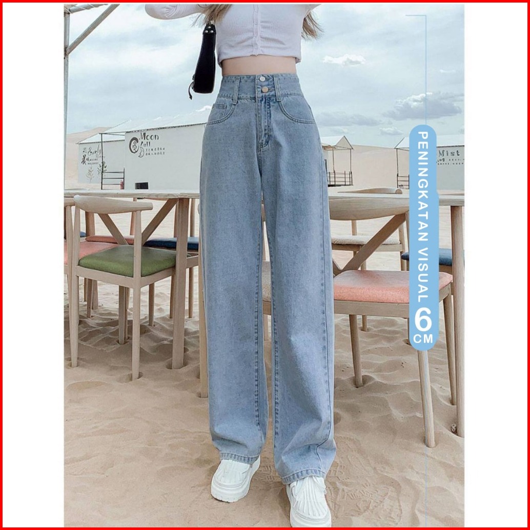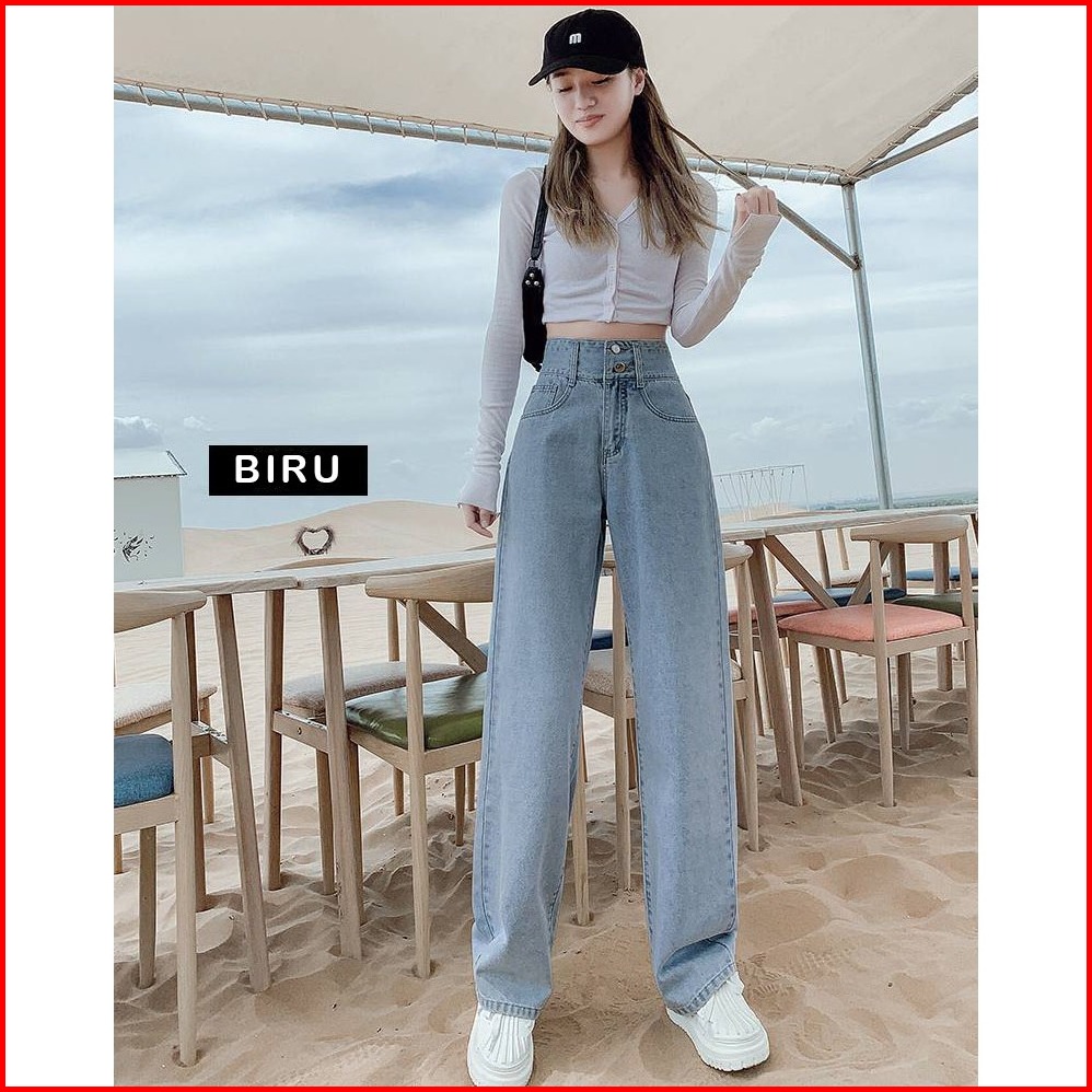 Highwaist Kulot Jeans Wanita Loose Korean Style Kulot High Waist Straight Jeans Celana Wanita