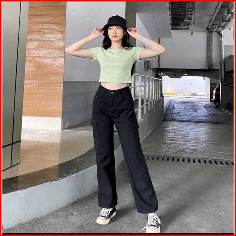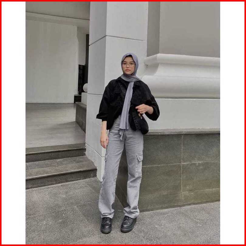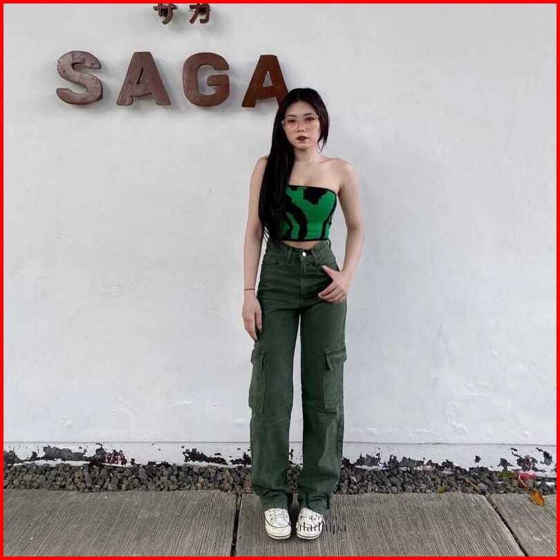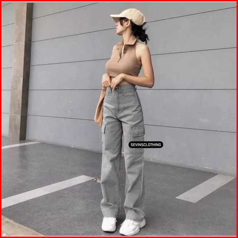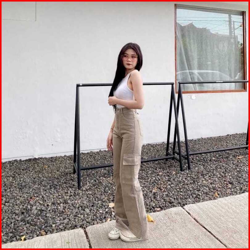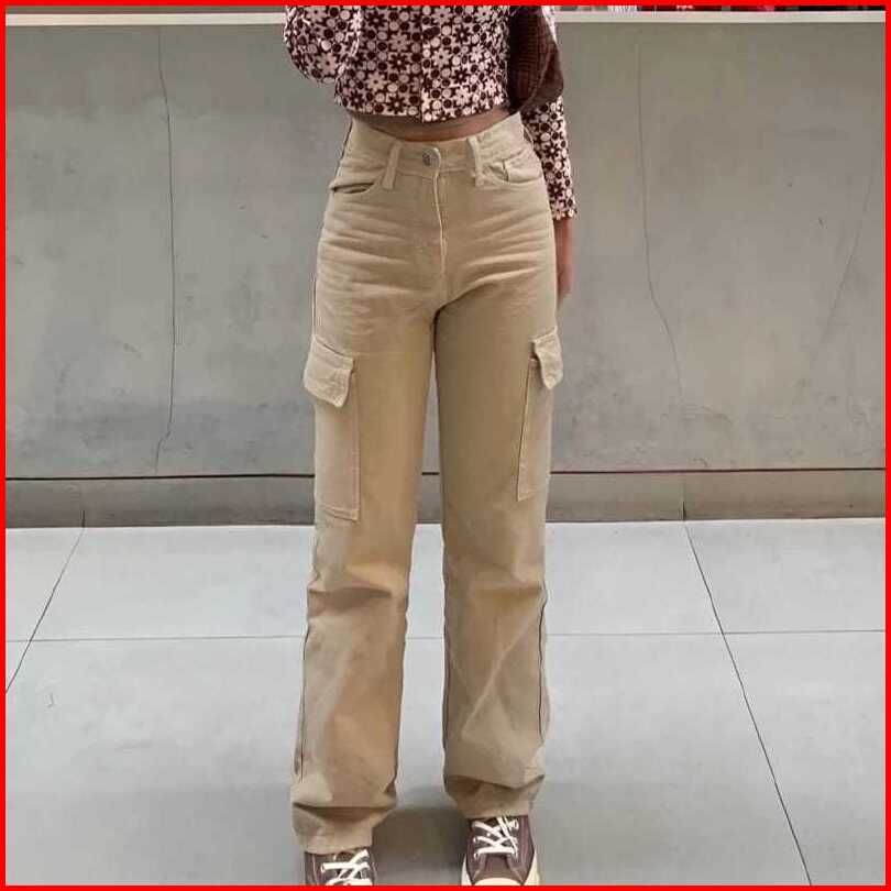 Celana Highwaist Cargo Jeans Wanita Voll 2