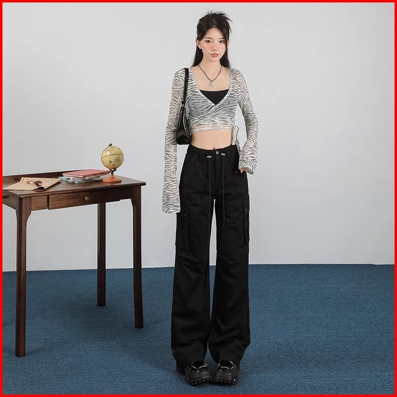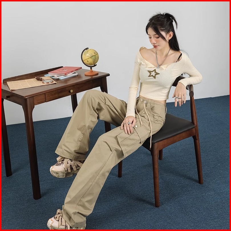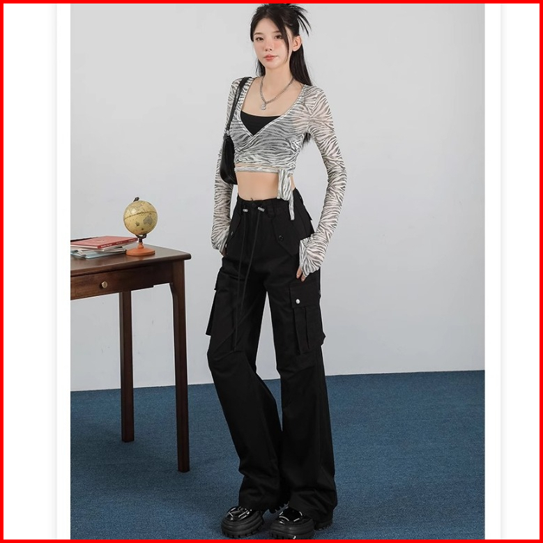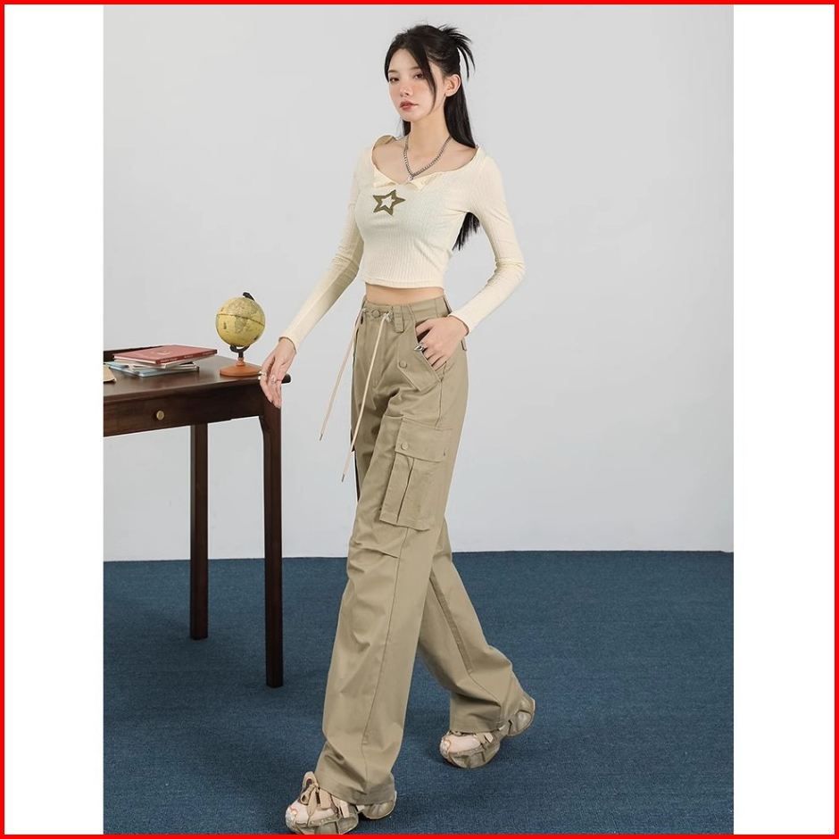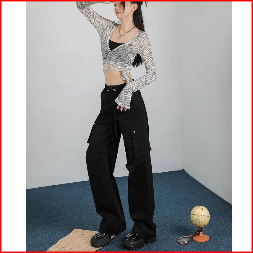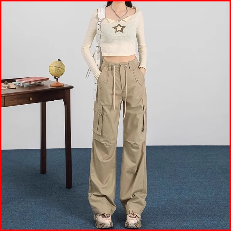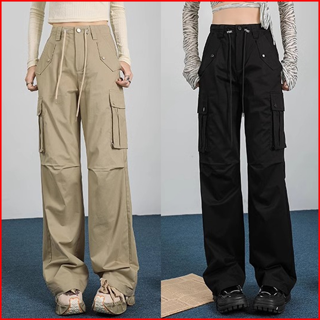 Korean Style Loose Celana Basic Wanita Cargo Pants Casual Straight Import Highwaist Loose Kulot Tali Trousers Pants Prem