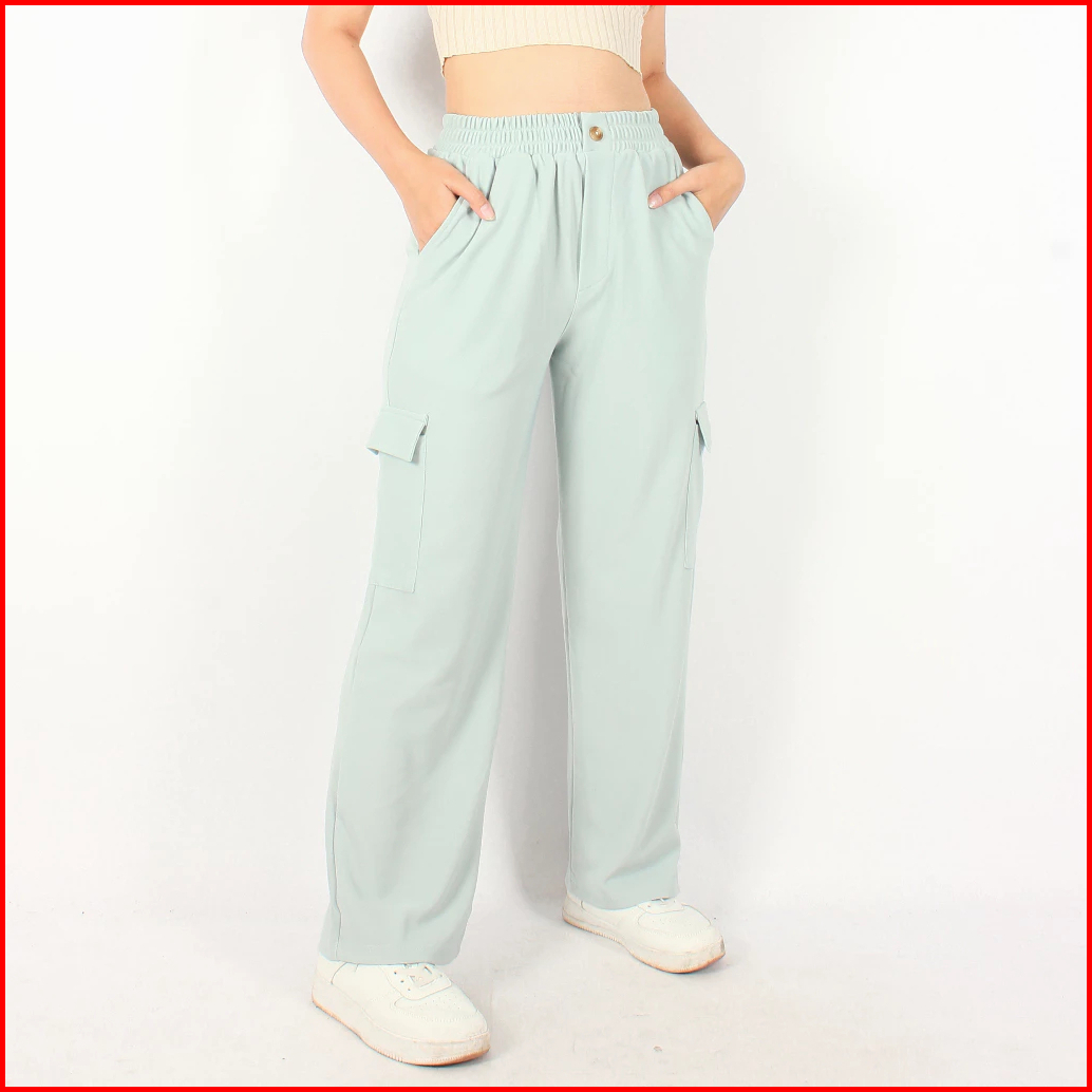 Queentin Celana Panjang Kargo Wanita 0292 Knit Ryuichi Stretch Premium
