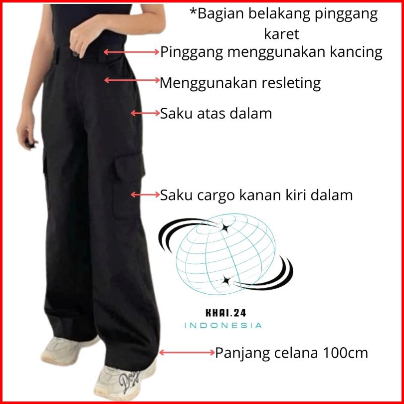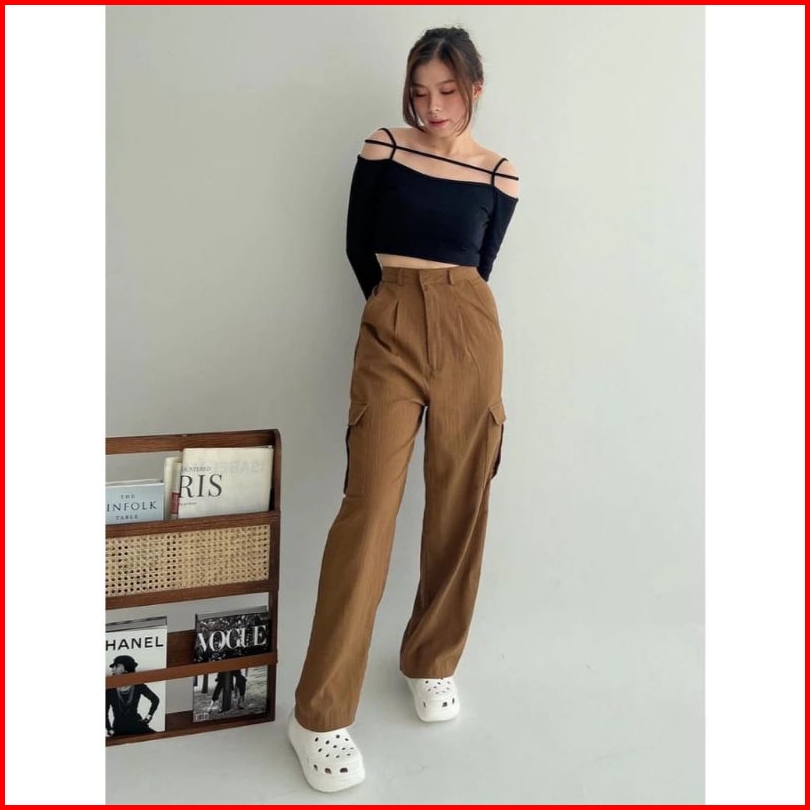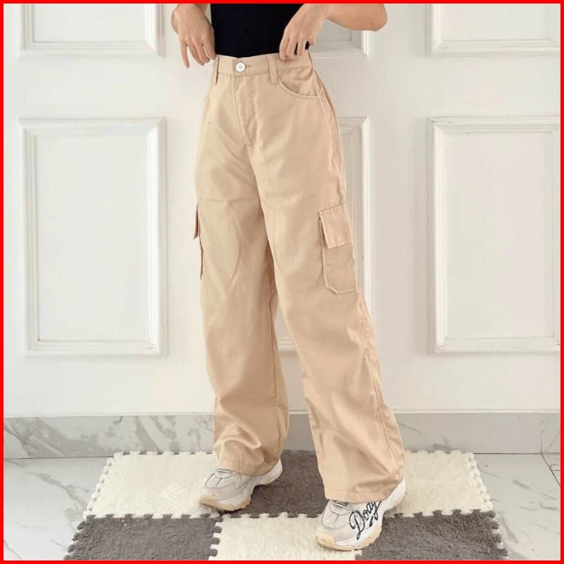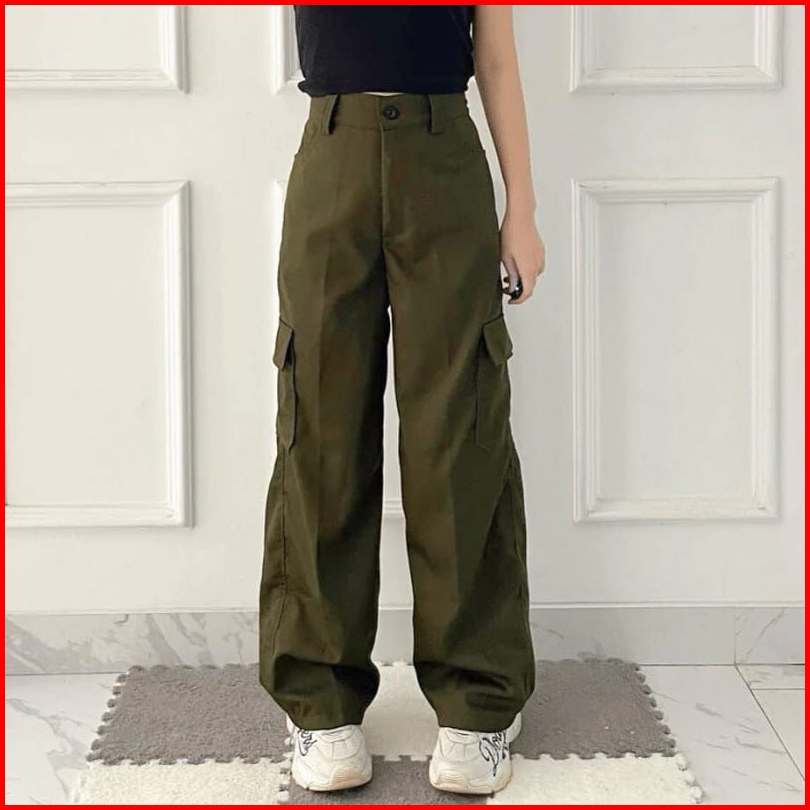 Celana Panjang Cargo Wanita Kulot Cewek Highwaist Korean Style Kargo Bahan Katun