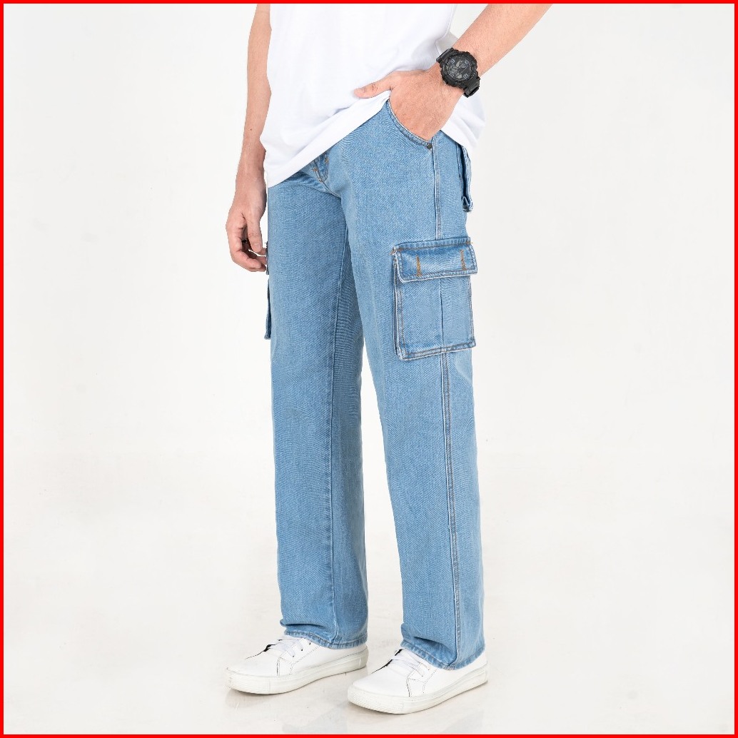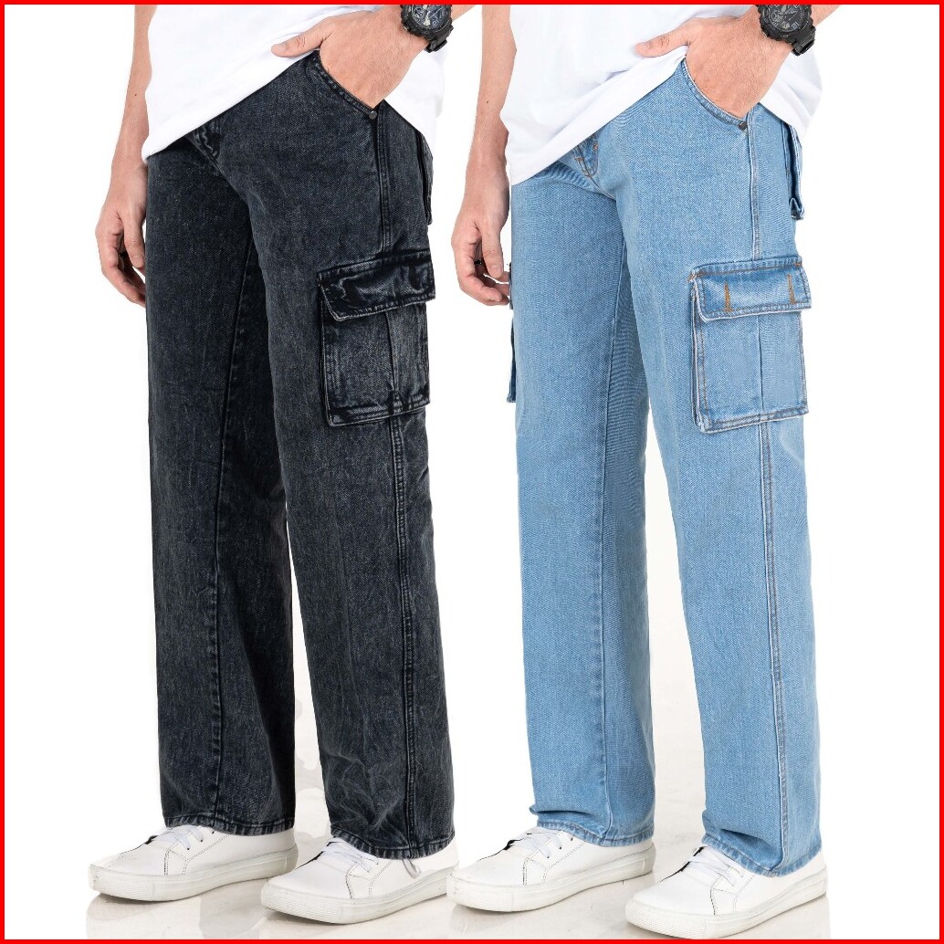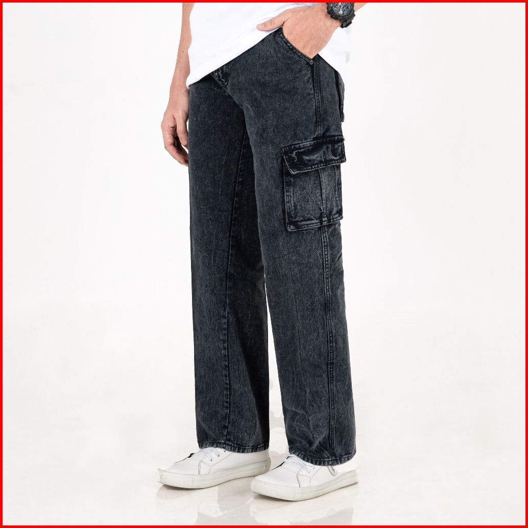 Celana Cargo Denim Otsky X Cavier Jeans Pria Reguler Fit T