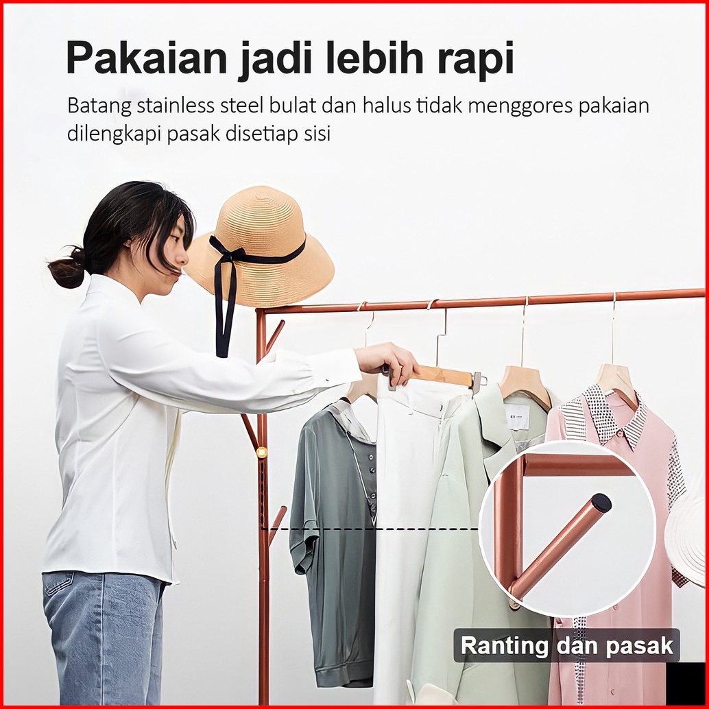 Stand Hanger Gawangan Besi Kuat Gantungan Baju Multifungsi Jemuran Pakaian Portable Serbaguna