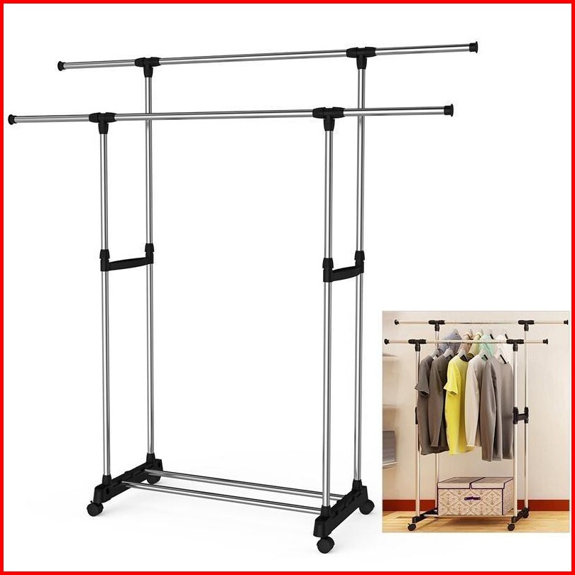 Shenar Gantungan Pakaian Serbaguna Clothes Rack Stainless Double Road