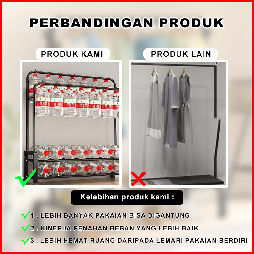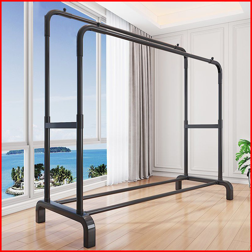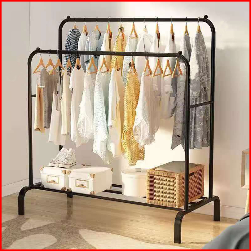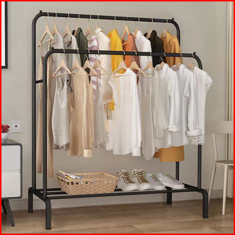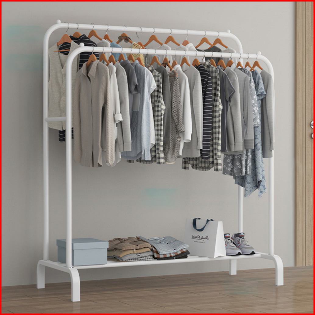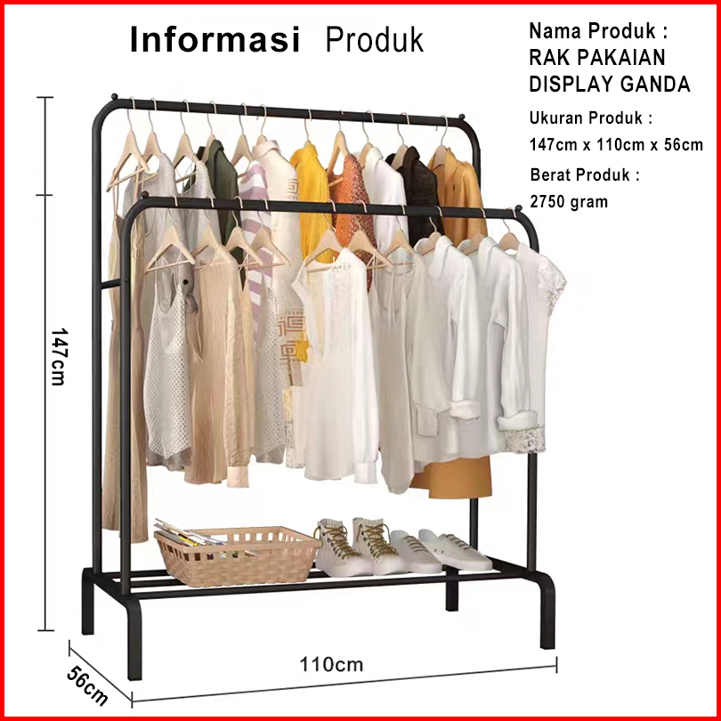 Stand Hanger Double Rak Gantungan Baju Besi Berdiri Minimalis Serbaguna Premium 150cm 110cm V6b1