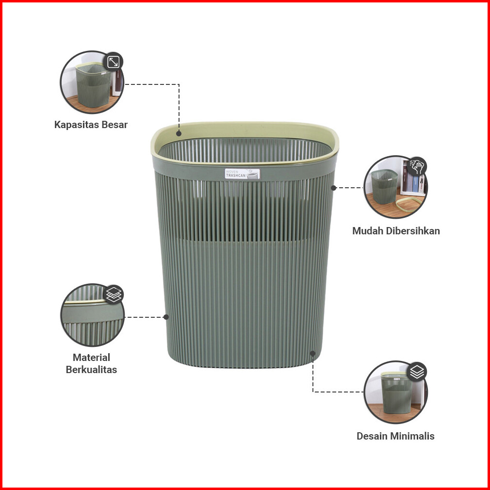 Informa 9 Ltr Flo Tempat Sampah Tanpa Tutup - Hijau Tong Sampah Wadah Pembuangan Alat Kebersihan Trash Bin