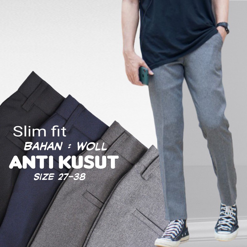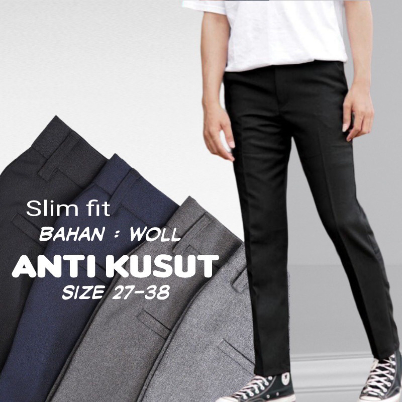 (Gratis Ongkir) Celana Ankle Pants | Celana Casual Pria | Celana Kantor Formal Pria Slimfit Bahan Dasar Kain Woll