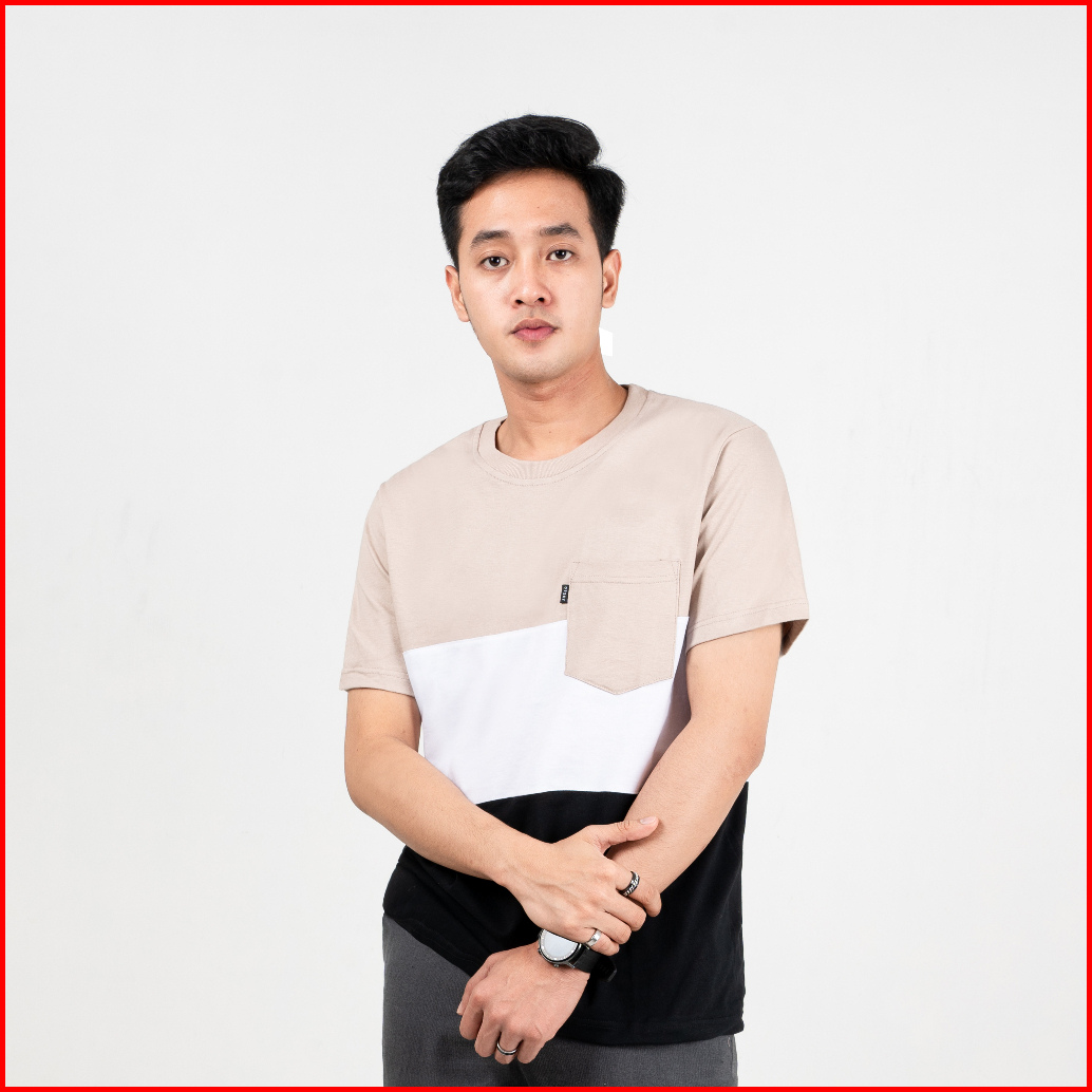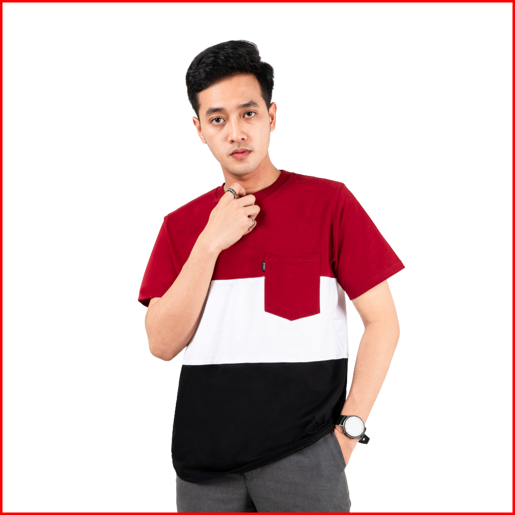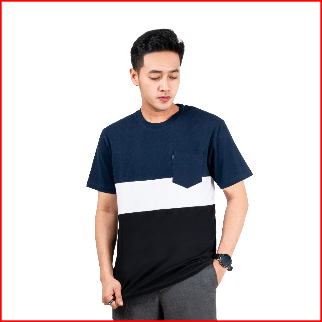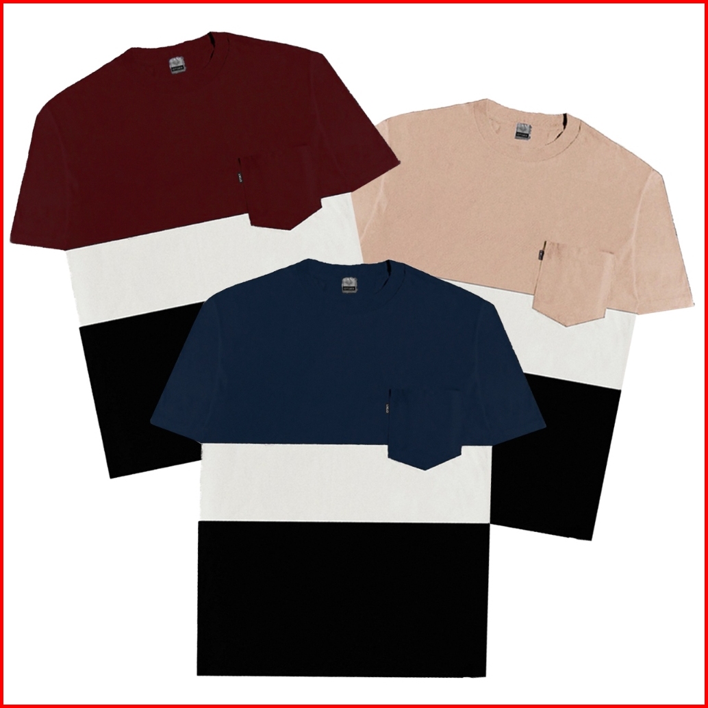 Otsky Kaos Pria Pocket Triple Colour Katun Polos Cotton 24s