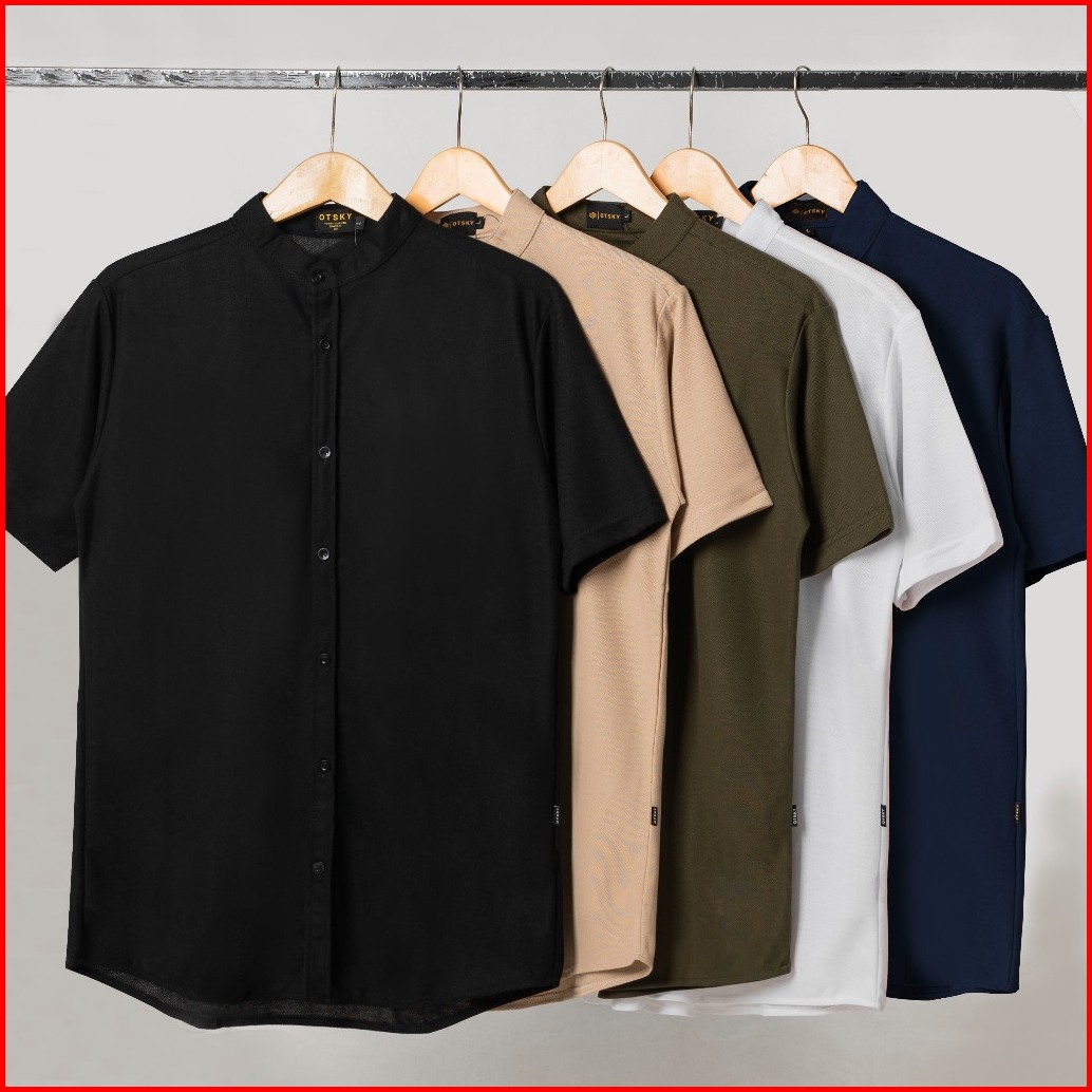 Otsky Kemeja Pria Pique Kualitas Premium Lengan Pendek Casual 2 K