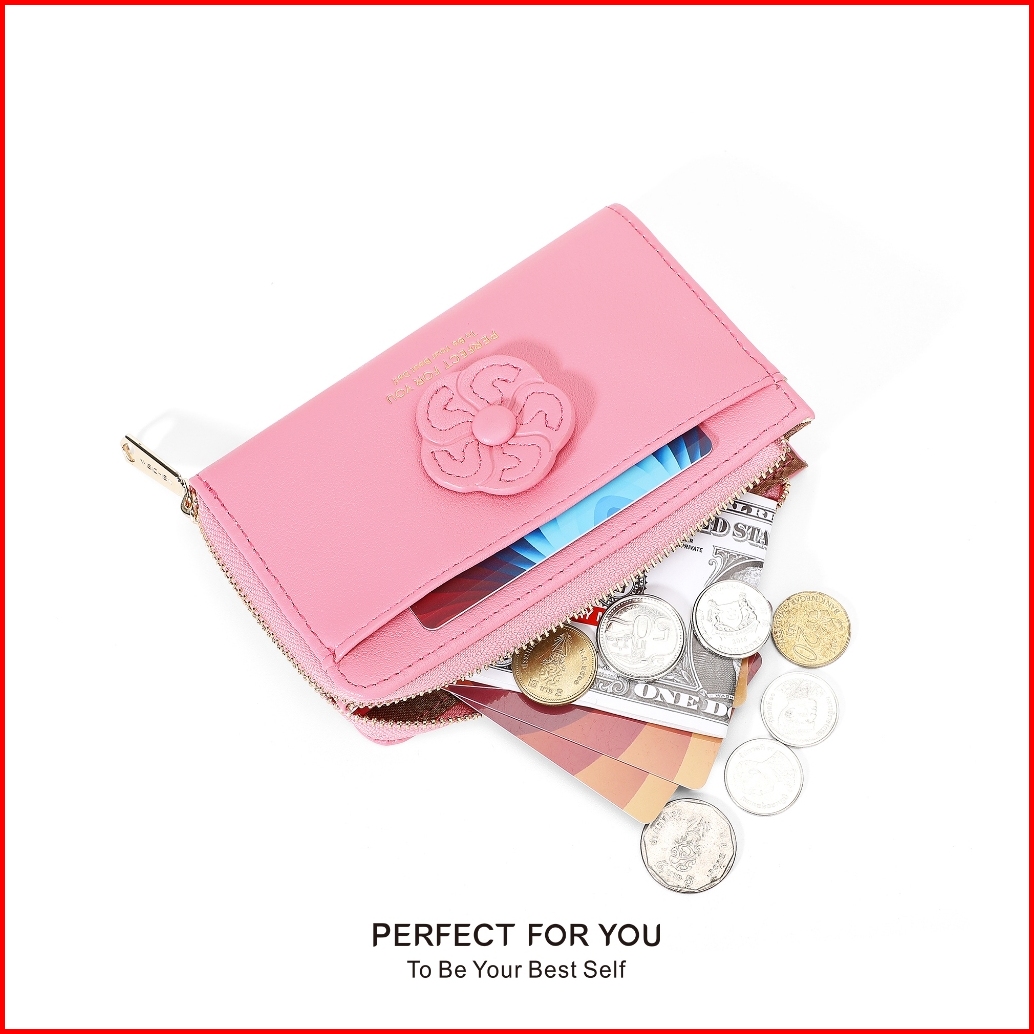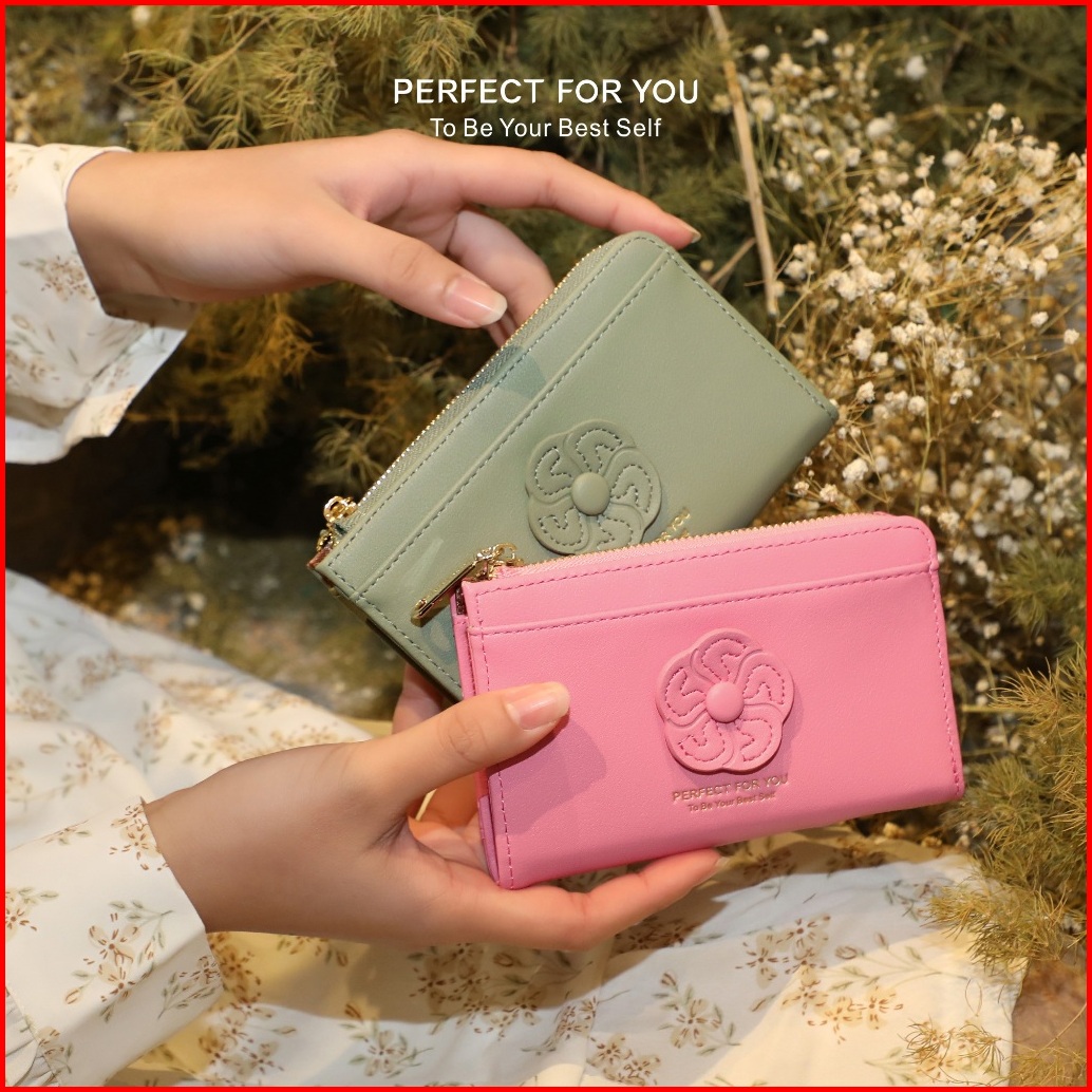 Dompet Wanita Kecil Perfect For You Blossom Wallet Bahan Kulit Pu Leather Premium Baeos