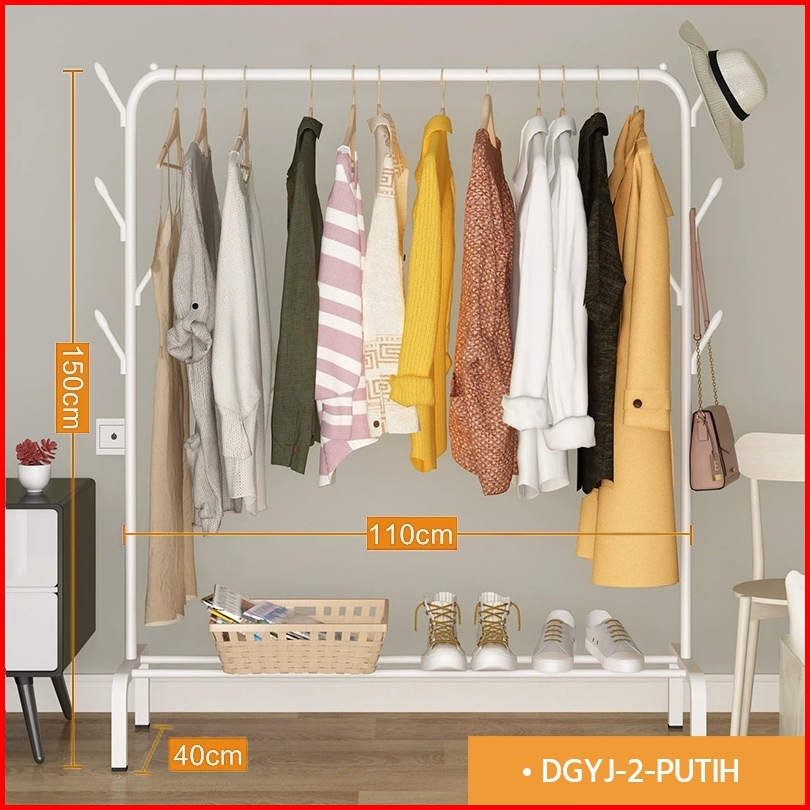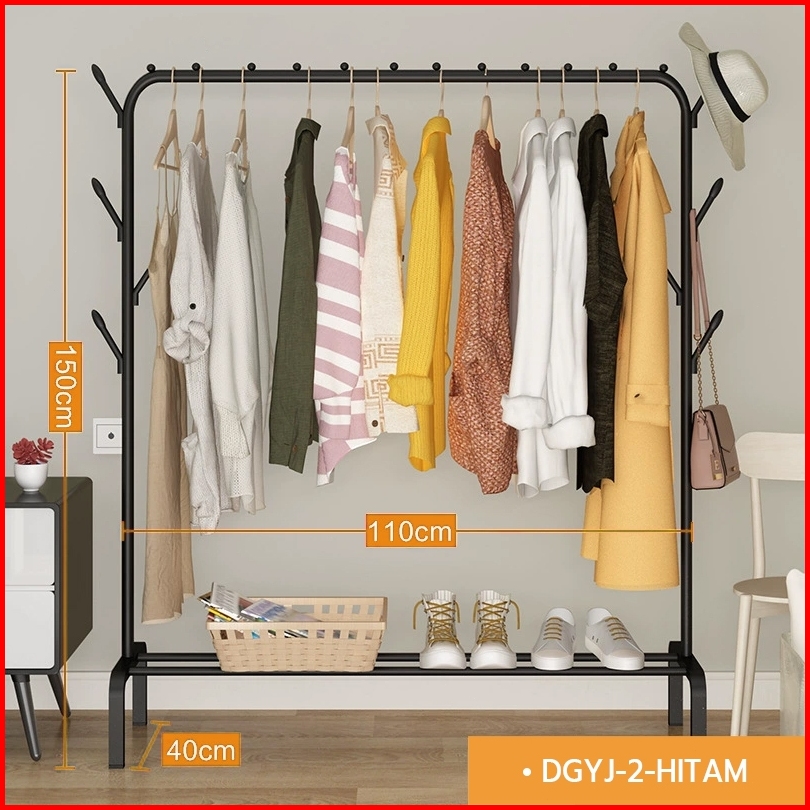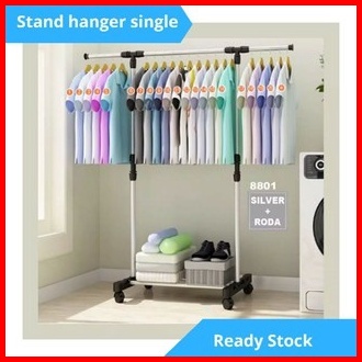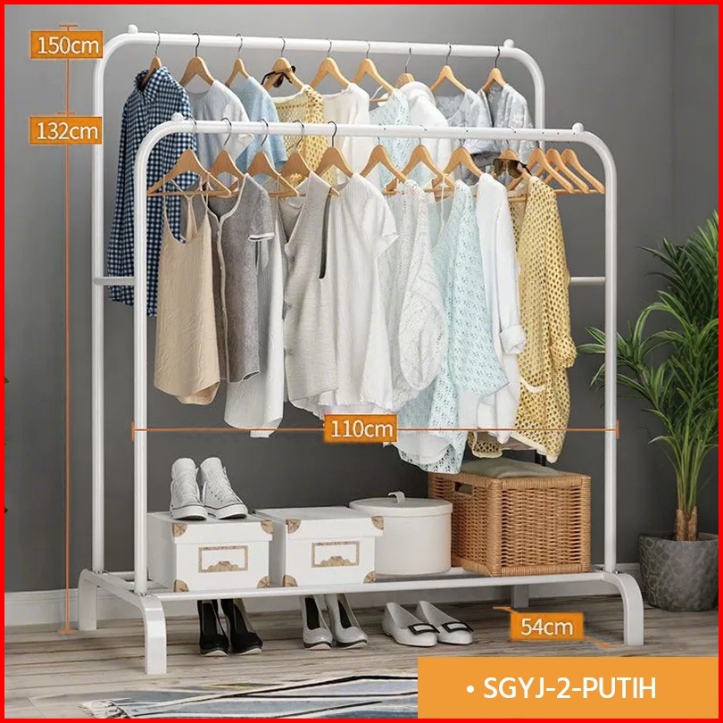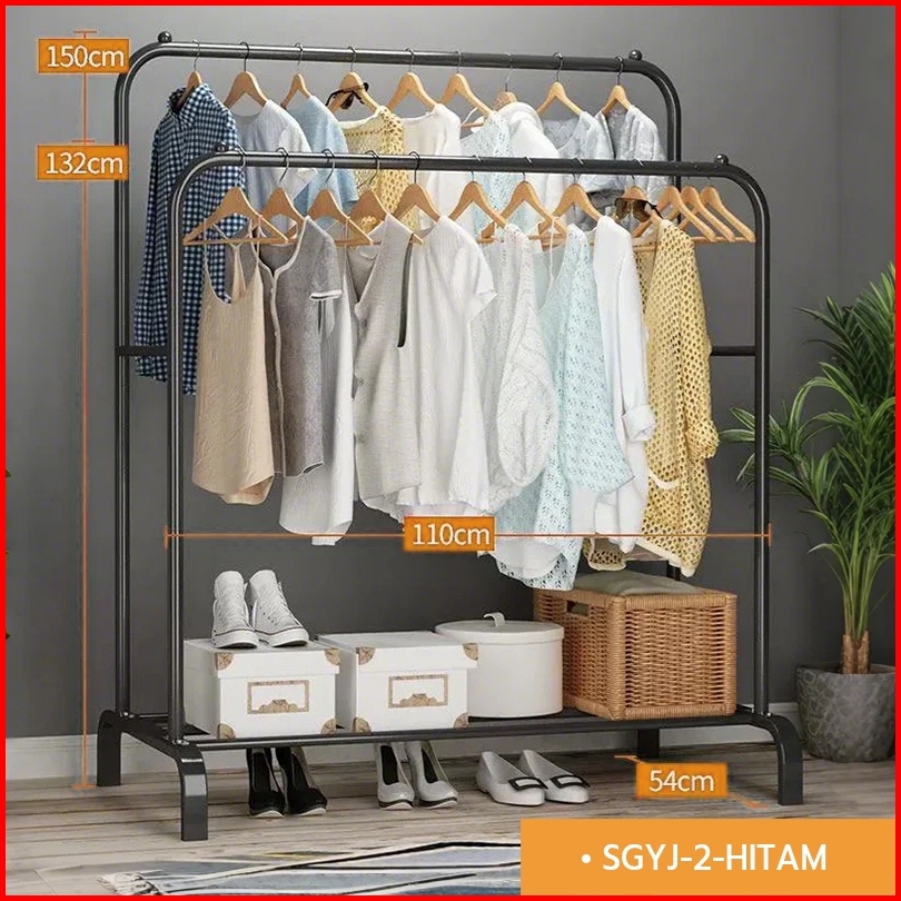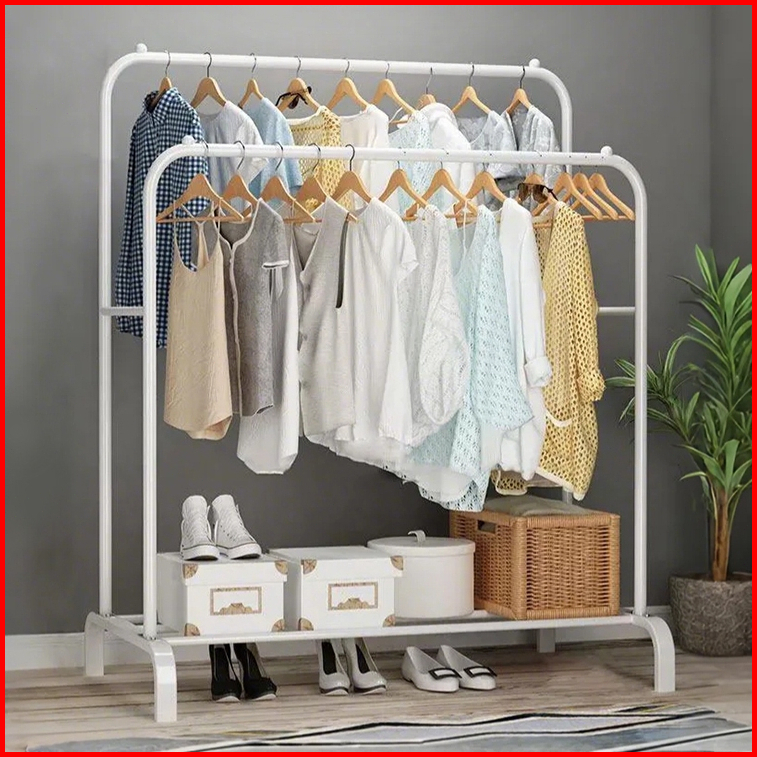 Rak Baju Gantung Besi Berdiri Stand Hanger Display Butik Bazar Rak Pengering Pakaian Satu Dua Lapis