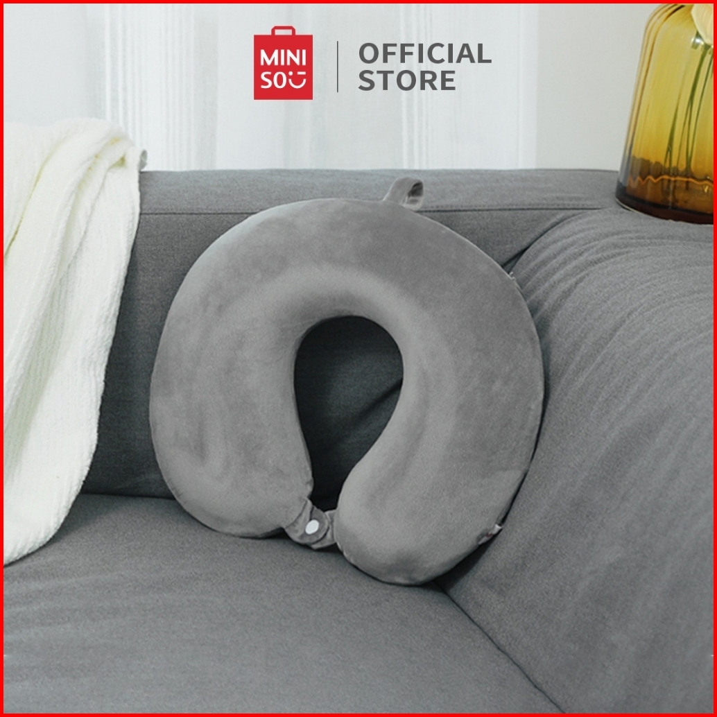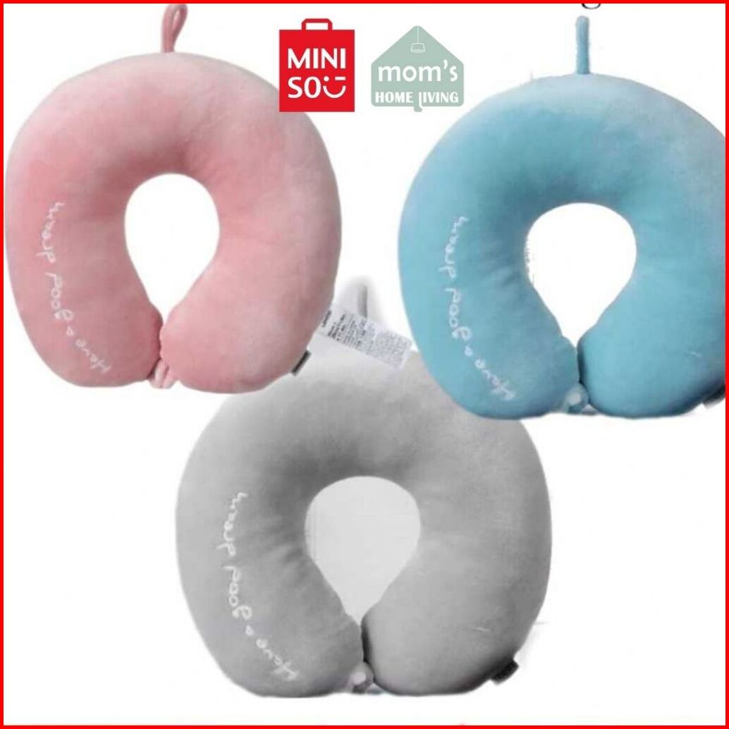 Miniso Bantal Leher U-shaped Neck Pillow Bantal Leher Travel Portabel Mobil Pesawat Kantor Cute Neck Pillow Pink Blue Pu