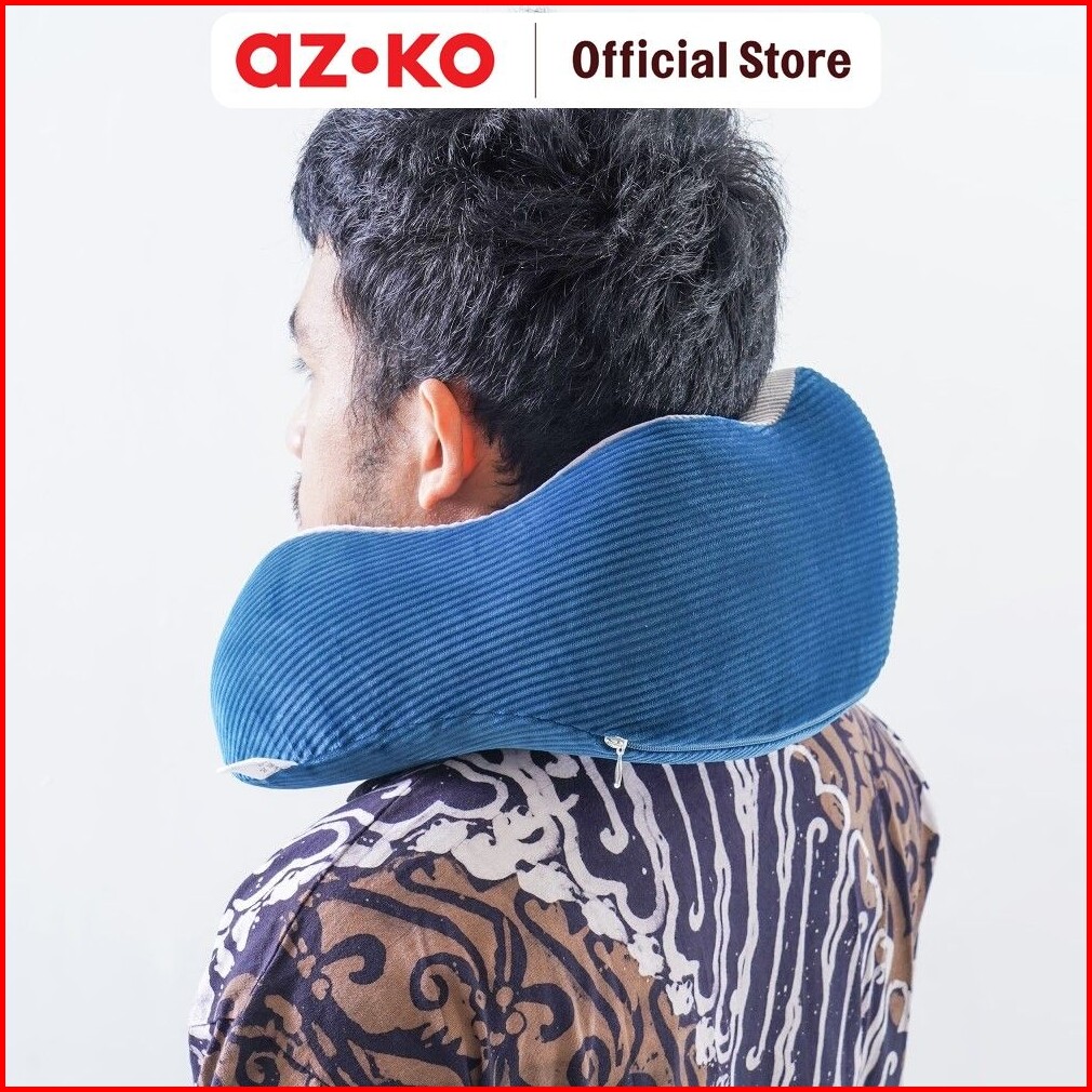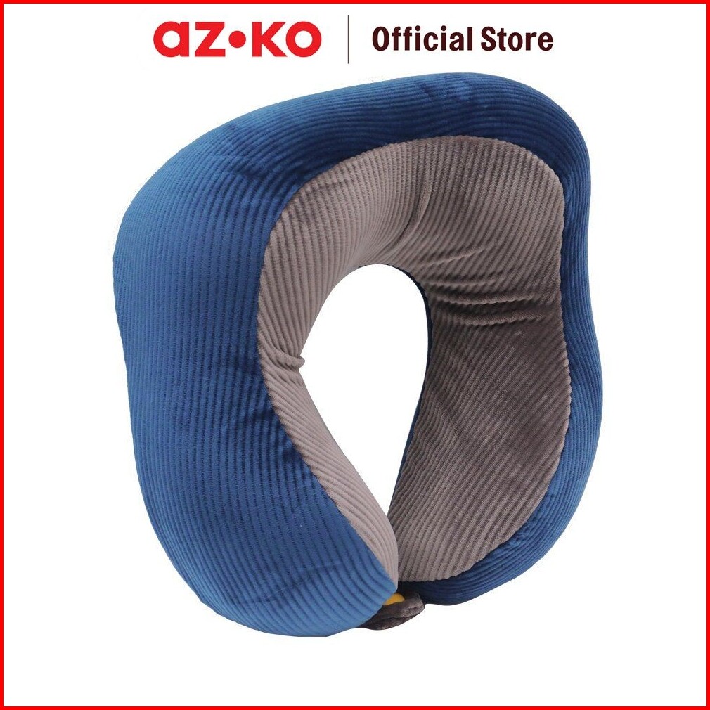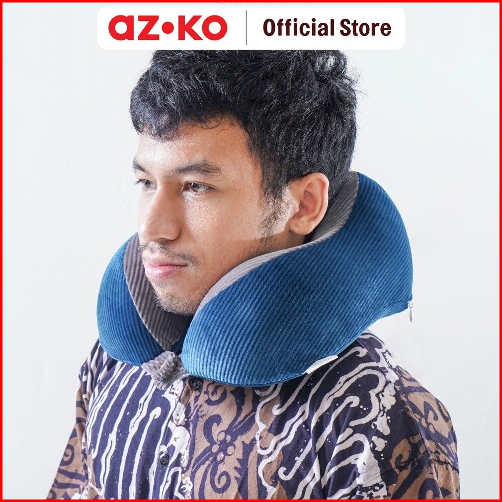 Azko Passport Bantal Leher Memory Foam Y22 - Biru Abu-abu Neck Cushion Travel Bantal Mobil U-neck Car Pillow Sandaran Le